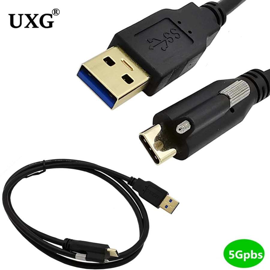 Comprar Cable USB 3,1 tipo C chapado en oro con bloqueo de tornillo, Cable de datos estándar USB3.0 para cámara de 0,3 m, 1m, 1m, 2m