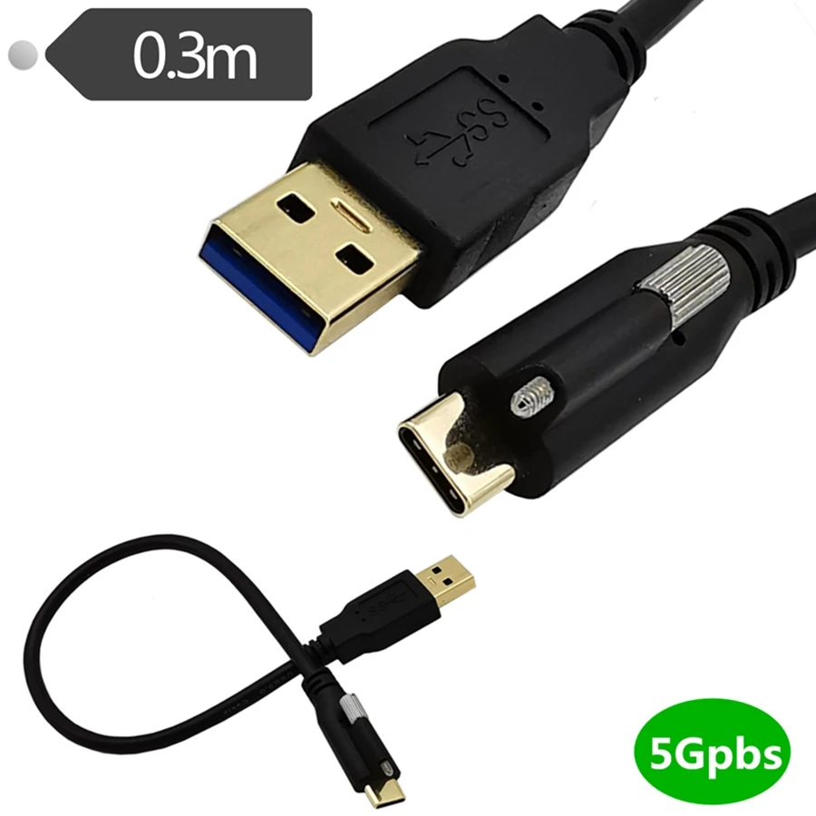 Comprar Cable USB 3,1 tipo C chapado en oro con bloqueo de tornillo, Cable de datos estándar USB3.0 para cámara de 0,3 m, 1m, 1m, 2m