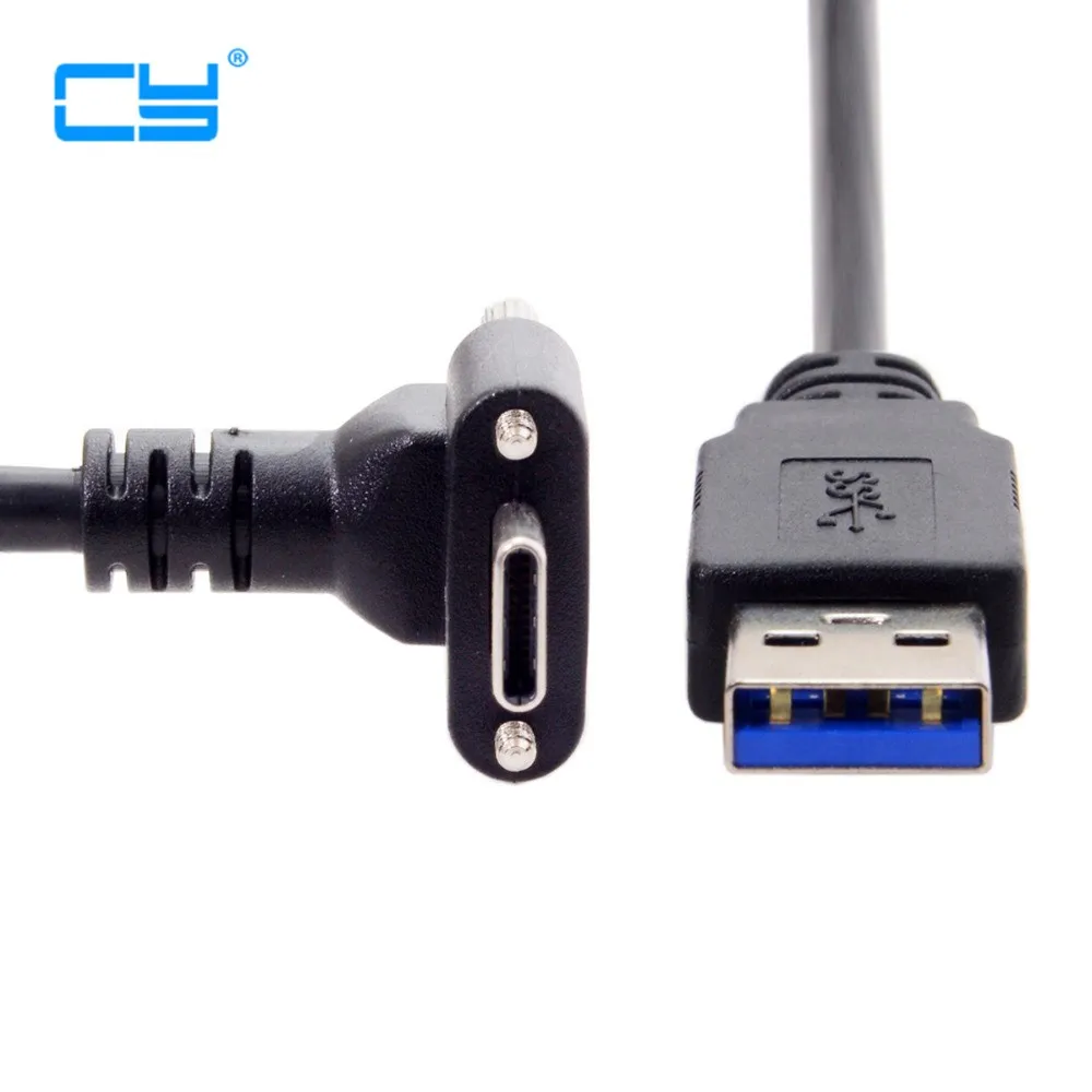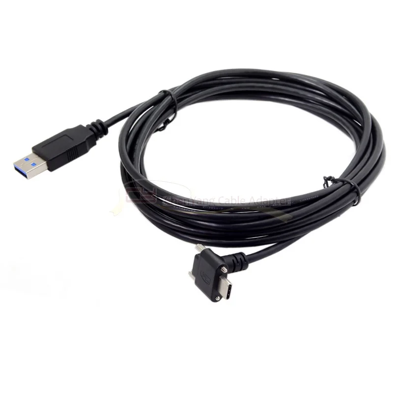 Comprar Cable USB 3,1 tipo C de doble tornillo de bloqueo a Cable de datos USB 3,0 estándar de 90 grados para cámara de 120cm, 300cm, 500cm, 1,2 m, 3m, 5m