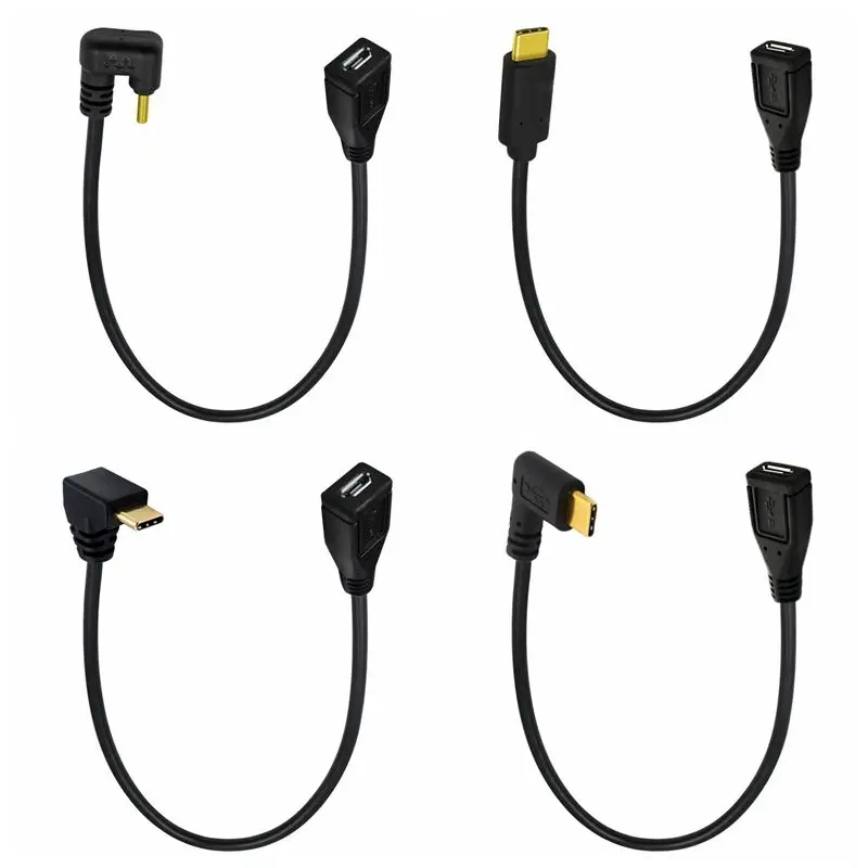 Comprar Cable USB 3,1 tipo C macho a Micro USB 2,0, Cable de datos hembra 5P, ángulo de 90 grados, izquierda/derecha/arriba/abajo/en forma de U, 0,25 m