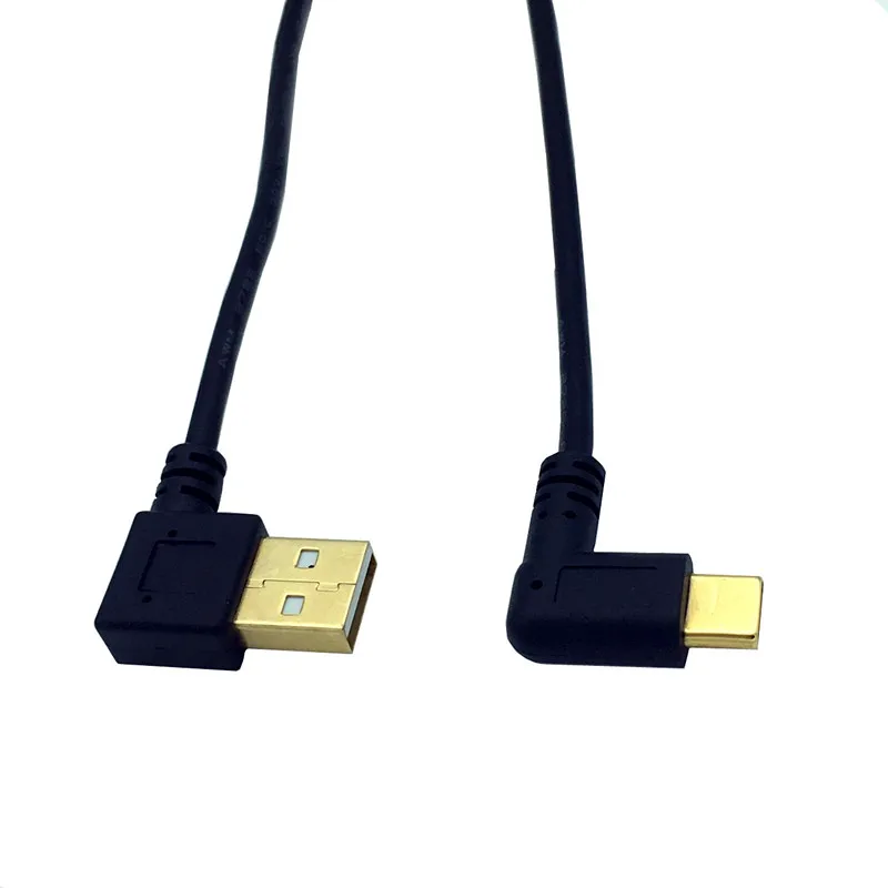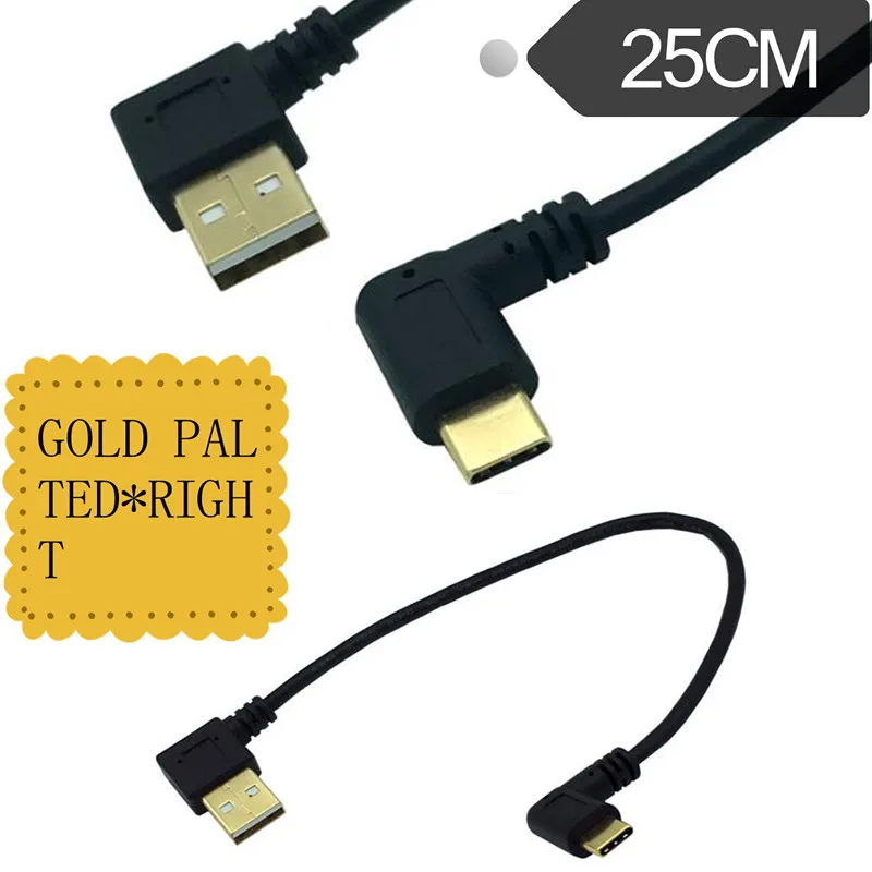 Comprar Cable USB 3,1 tipo c macho a USB, conector de carga de datos, izquierda y derecha, 90 grados, chapado en oro, 25cm, para tableta y teléfono