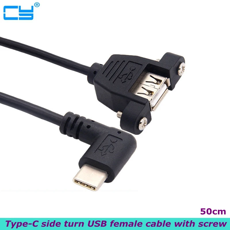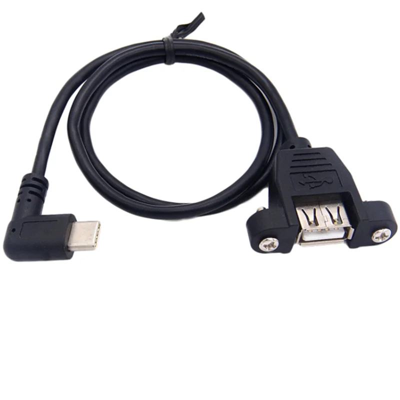 Comprar Cable USB 3,1 USB-C tipo c macho a USB 2,0 hembra de alta velocidad de 90 grados con orificios para tornillos de montaje en Panel para placa base de chasis