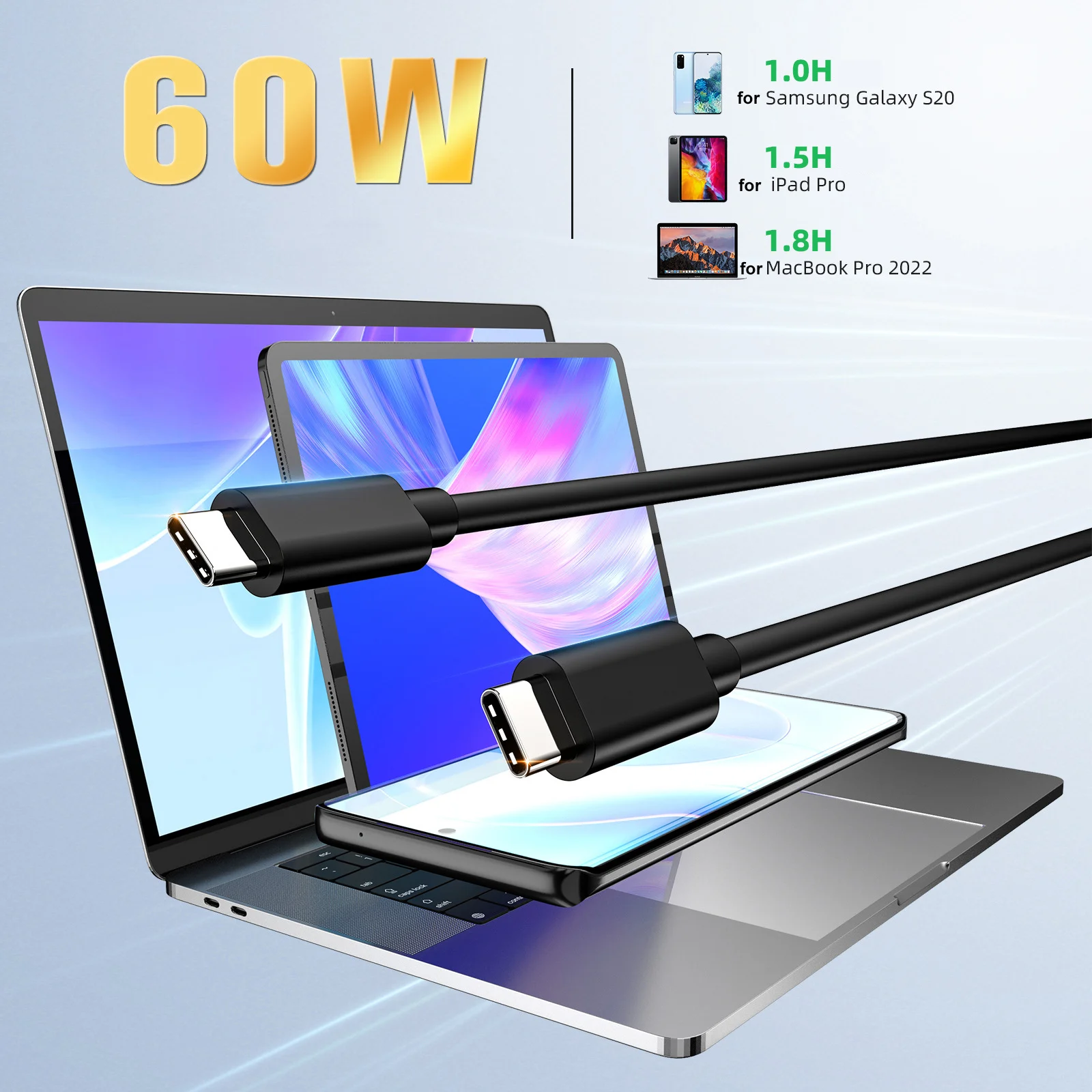 Comprar Cable USB 3,2 Gen 2 de 10Gbps tipo C a C, Cable de carga rápida de 60W para iPhone 15, iPad, Macbook, Samsung, Xiaomi, Cable cargador de datos USB C
