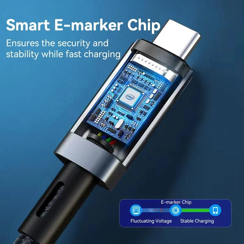 E-marker funciona para 28V con un powerbank y Pinecil V2. El límite de 48 voltios que informa puede ser peligroso para el conector, pero de todos modos nadie tiene dispositivos PD EPR que utilicen este voltaje. La resistencia se mide (calculada con valores de la foto) para ser inferior a 130 mili ohmios para un cable de 1,5 m, totalmente aceptable por 3 euros (lamentablemente la resistencia incluye el adaptador USB C hembra-hembra). El cable apenas está más caliente que la temperatura ambiente a 3 A, pero no creo que pueda sobrecalentarse incluso en un espacio cerrado bajo una carga constante de 5 A. DP1.4 HBR3 2 carriles + 2x USB 3.x 5Gbps carriles funcionan (monitor 4k 60hz 8 bpc con hub usb 3.0). No puedo probar USB4/thunderbolt, pero dos cables de 1,5 m en serie no pueden hacer HBR3 ni HBR2 (DP HBR2 es 1/4 del ancho de banda de USB4 por carril) y retroceden a HBR1, que tiene fallas. Recomiendo conseguir un cable de 1 metro o menos para las increíbles velocidades USB4 de 40 Gbps. Considerándolo todo, este es un buen cable USB universal, pero demasiado rígido si lo desea solo para cargar su teléfono.