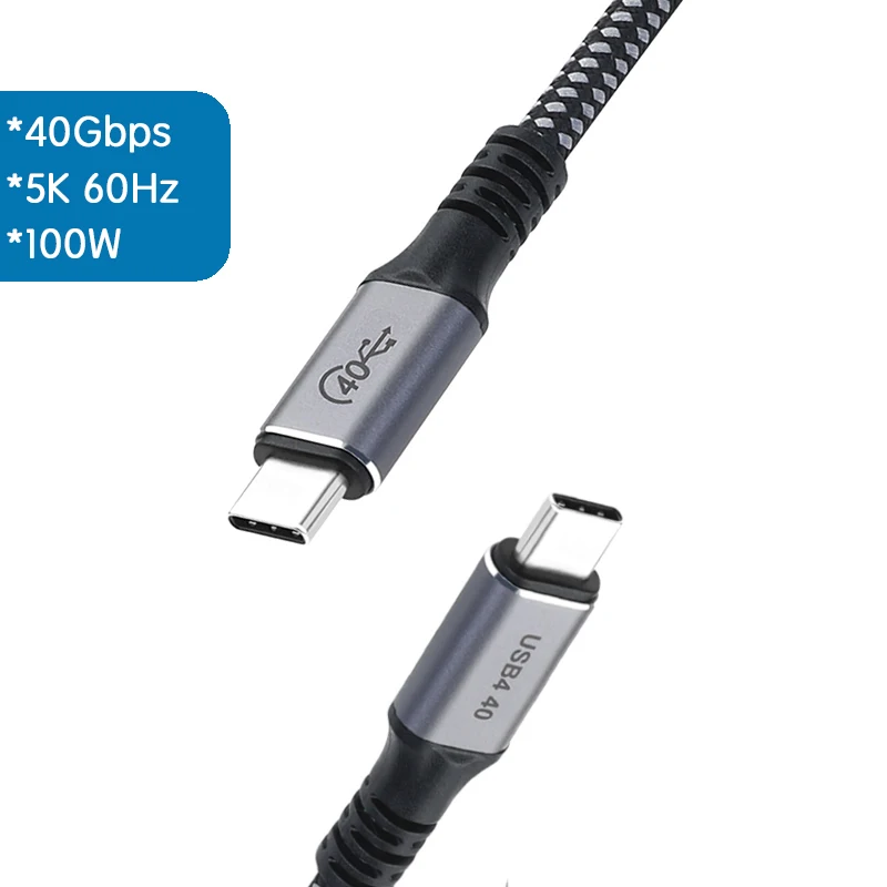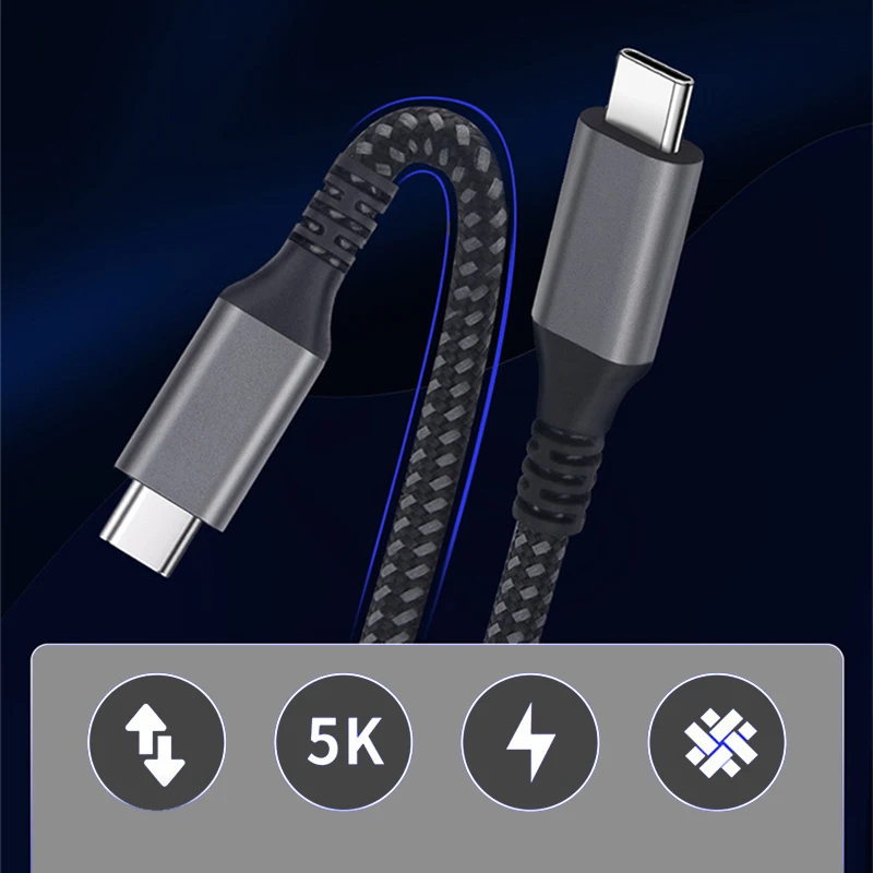Cable USB 4 Thunderbolt 4 DE 40Gbps, rápido, 5K, 60Hz, transferencia de datos, cable cargador tipo C PD de 100W, para pantalla M1 Macbook/Mac Studio