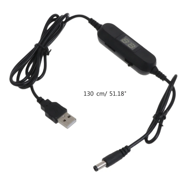 El paquete incluye1 cable USB a 1,3 V-12V 5,5x2,1mm con 3 adaptadores