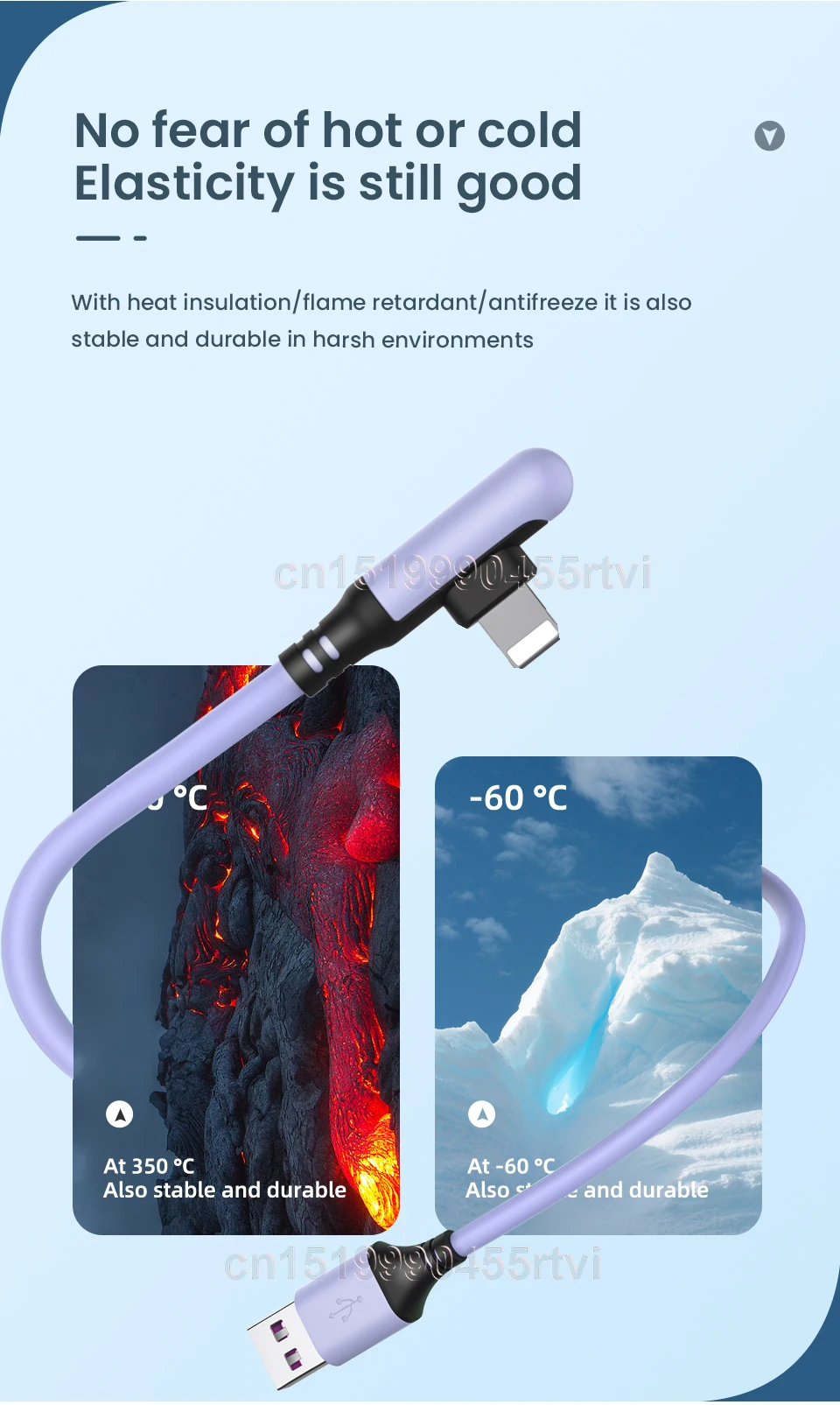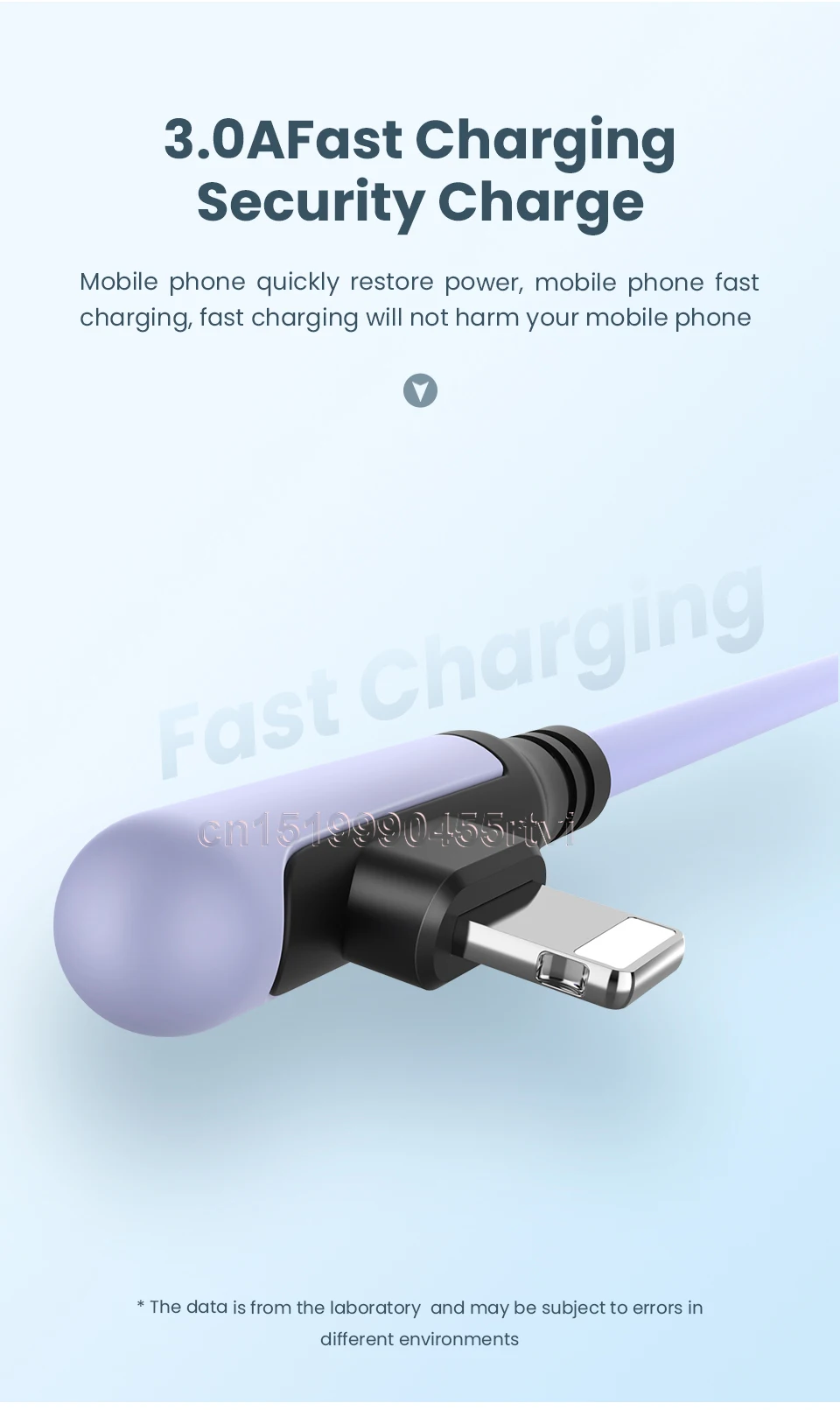Comprar Cable USB de 90 grados para móvil, cargador de carga rápida para iPhone 14, 13, 12, 11 Pro Max, XR, XS, 8, 7, 6s, 5s, Cable de datos de silicona líquida, 0,3/1,2/1,8 M