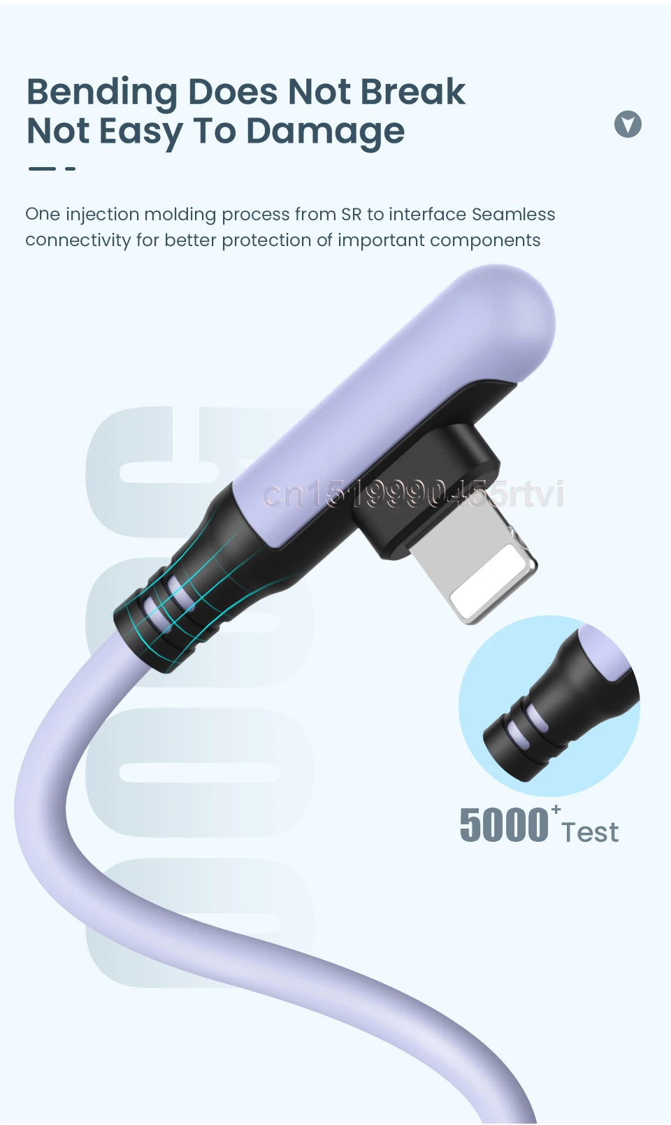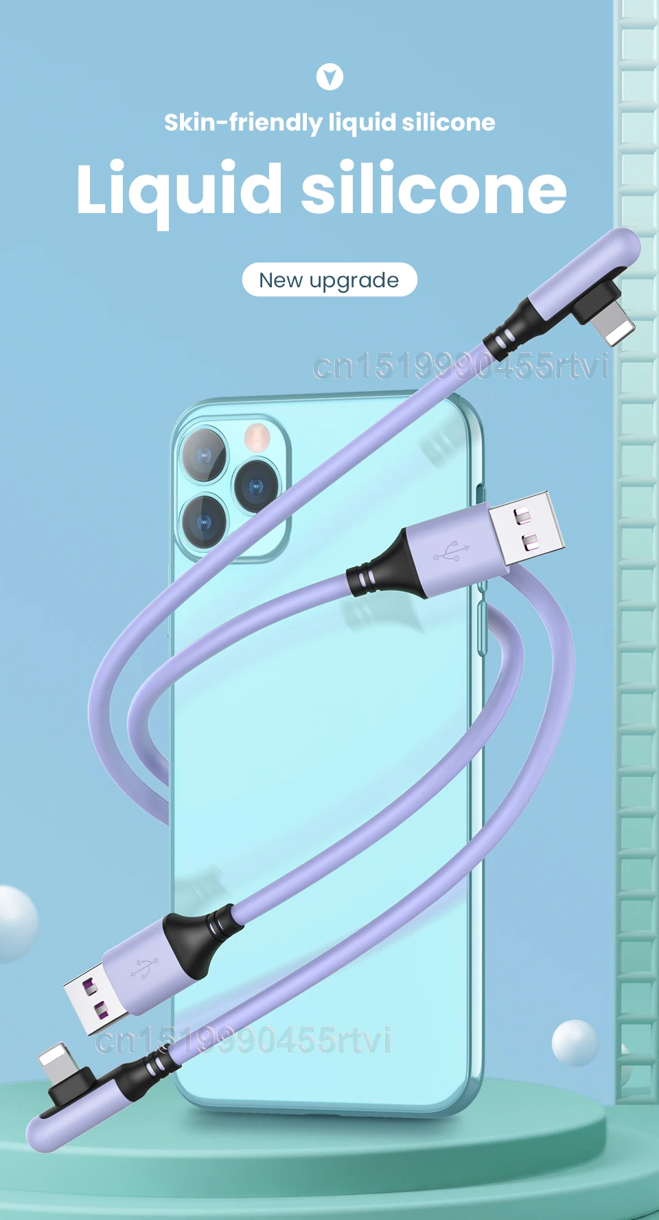 Cable USB de 90 grados para iPhone 12, 11 Pro Max, X, XR, XS, 8, 7, 6, 6s, 5, cargador de carga rápida, Cable de datos de silicona líquida, 0,3/1,2/1,8 M