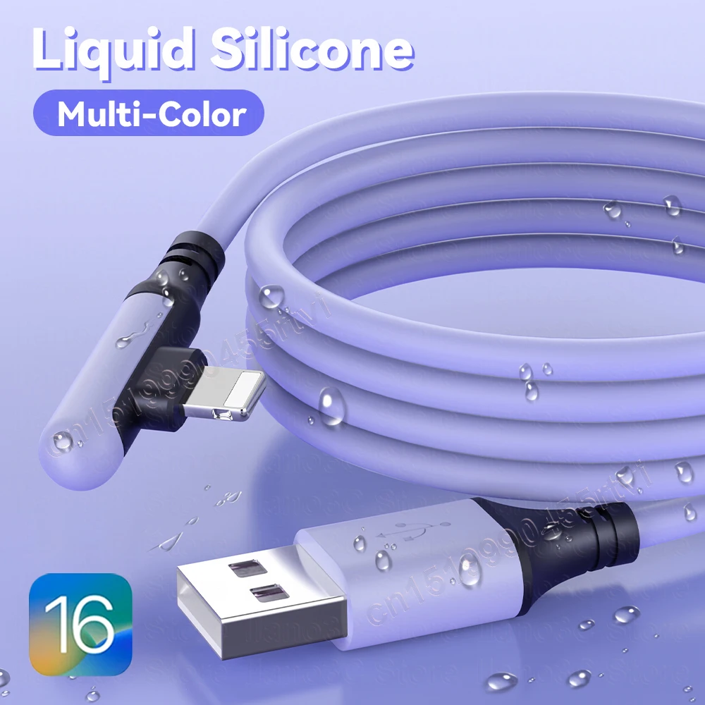 Comprar Cable USB de 90 grados para móvil, cargador de carga rápida para iPhone 14, 13, 12, 11 Pro Max, XR, XS, 8, 7, 6s, 5s, Cable de datos de silicona líquida, 0,3/1,2/1,8 M