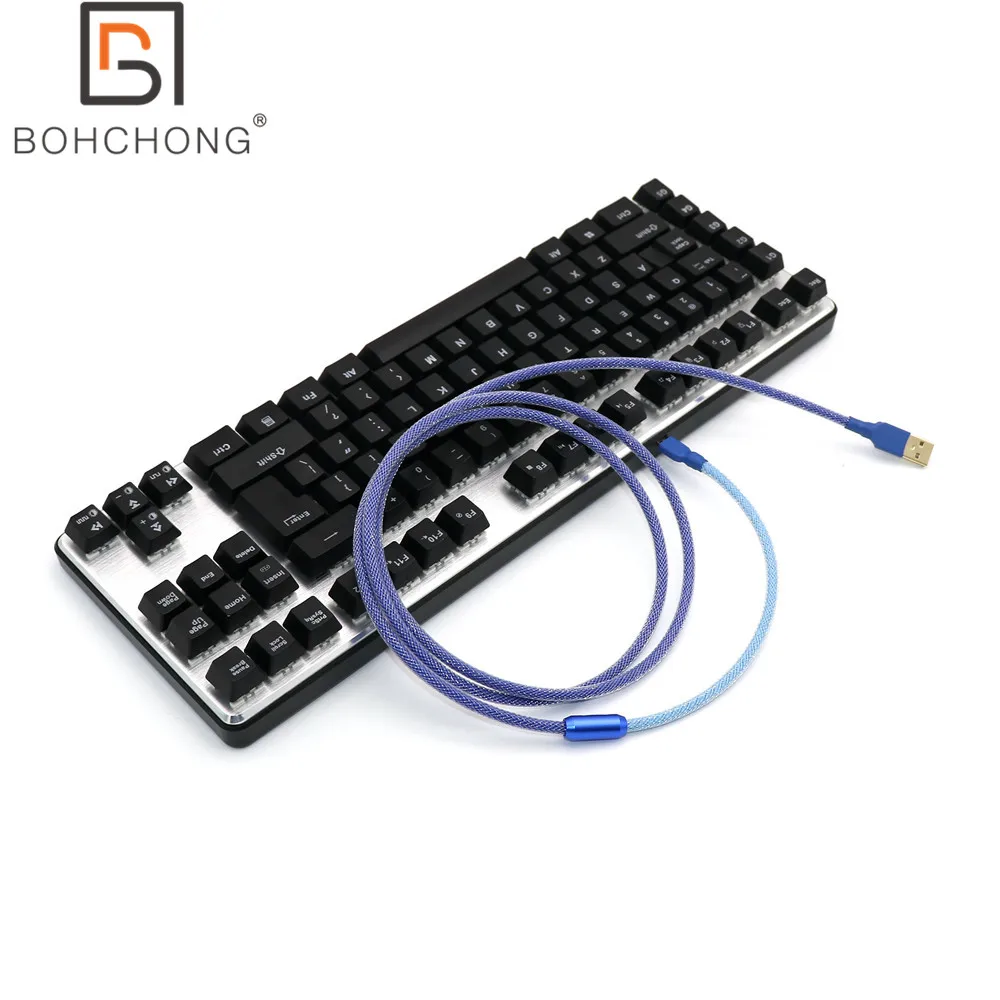 Cable USB a Micro de dos toneladas de doble manga personalizado Original de fábrica para Teclado mecánico con hebilla decorativa de aleación