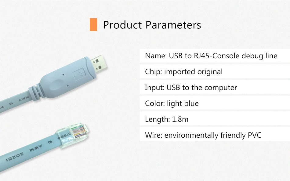 1. Nombre del producto:Tipo-C USB A RJ45 Línea de control CONSOLA USB Línea de enrutador Cable de consola Cisco RJ 45 A USB