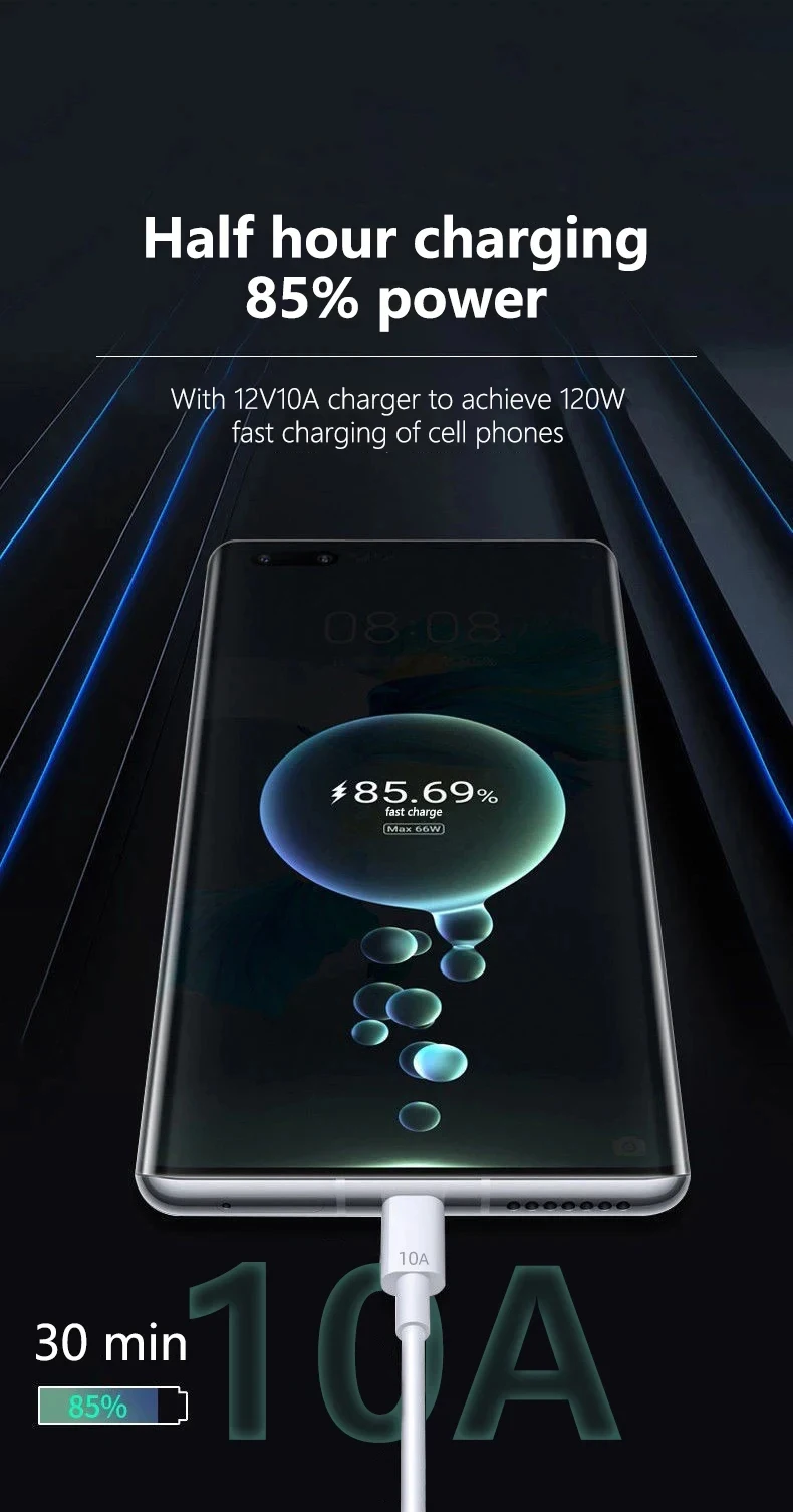 Comprar Cable USB a tipo C de carga rápida, Cable de datos de 120W, 10A, para For Samsung, Xiaomi Mi, Huawei, accesorios de teléfono