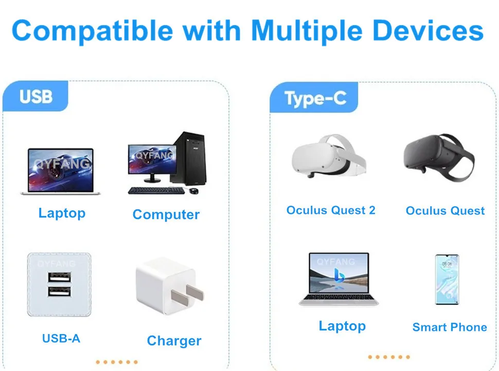 【Gran compatibilidad】este cable A C es compatible con SSD externo USB C, auriculares Quest y Quest 2 VR,. Galaxy S22 /S22 Ultra/S21/S21 +/S20/Note10/Note 10 Plus/Note 20 S10/S10e/S10 +, google Pixel XL/2/2XL/3/3XL/4 XL/5, iPad Pro 2020, MacBook Pro, MacBook Air , Chromebook, Dell XPS 13, Yoga 900 720, ASUS ZenBook 3, HP Spectre Envy, y otros dispositivos USB-C.