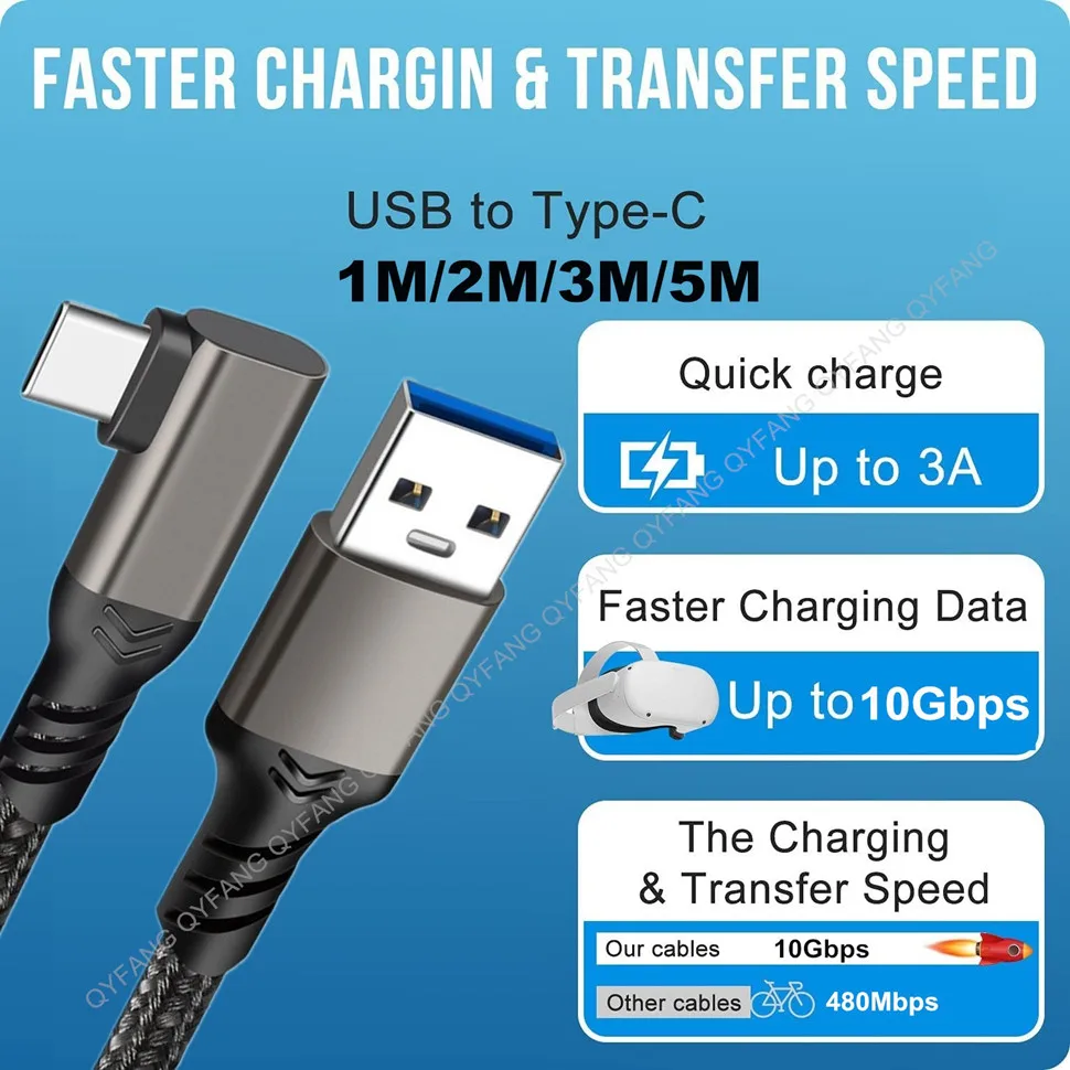 Comprar Cable USB A USB C de 5m, 10Gbps, 3A, USB3.2, Gen1, carga rápida para auriculares Oculus Quest 1/2, enlace VR, transferencia de datos, USB-A, accesorios VR