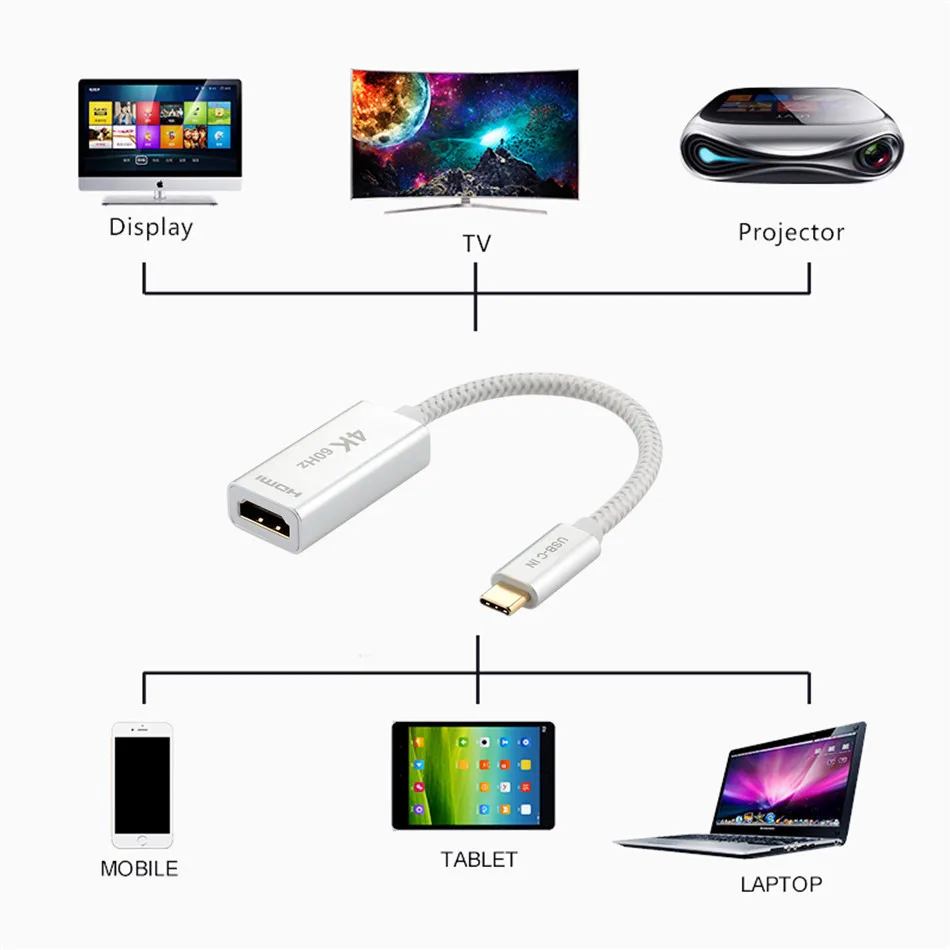 Comprar Cable USB de alta fidelidad tipo C a HDMI, convertidor USB 3,1 a HD-MI, adaptador HD 4K HDTV para MacBook Chromebook y Samsung