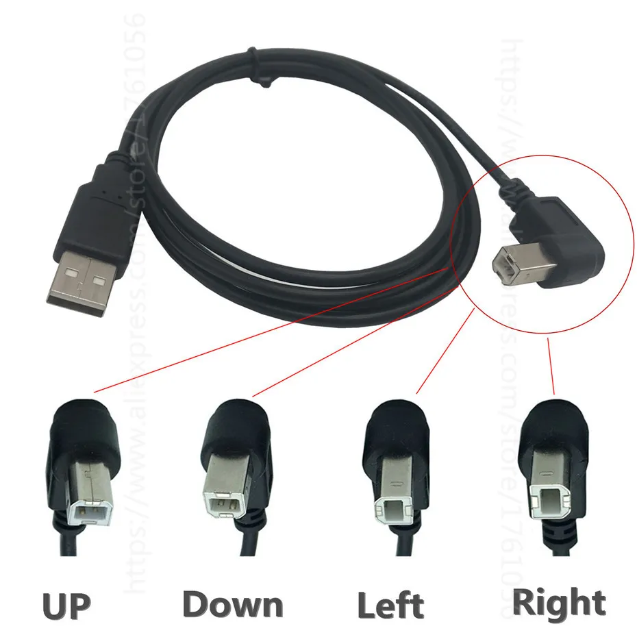 4, USB 2.0 A macho a 90 grados tipo B macho Cable de impresora de transmisión de alta velocidad