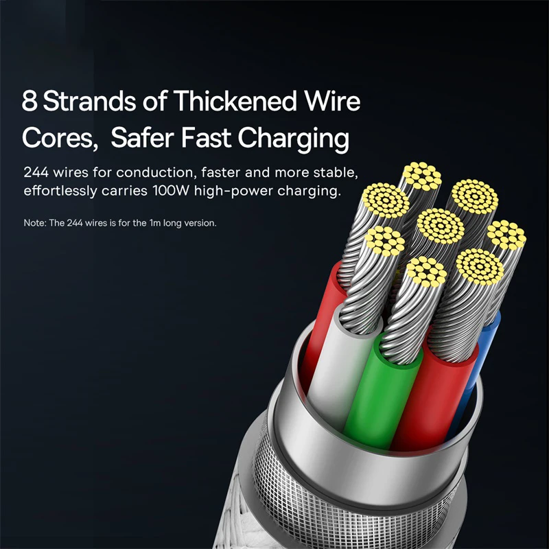 244 cables para conducción, más rápido y estable, transporta sin esfuerzo una carga de alta potencia de 100 W.