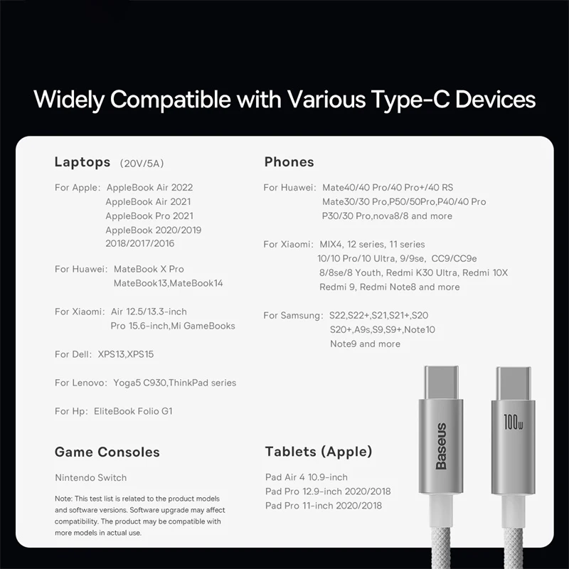 Comprar Cable USB Baseus de 100W para iPhone 16 15 promax USB C a tipo C Cable de carga rápida para teléfono móvil Xiaomi Samsung MacBook iPad