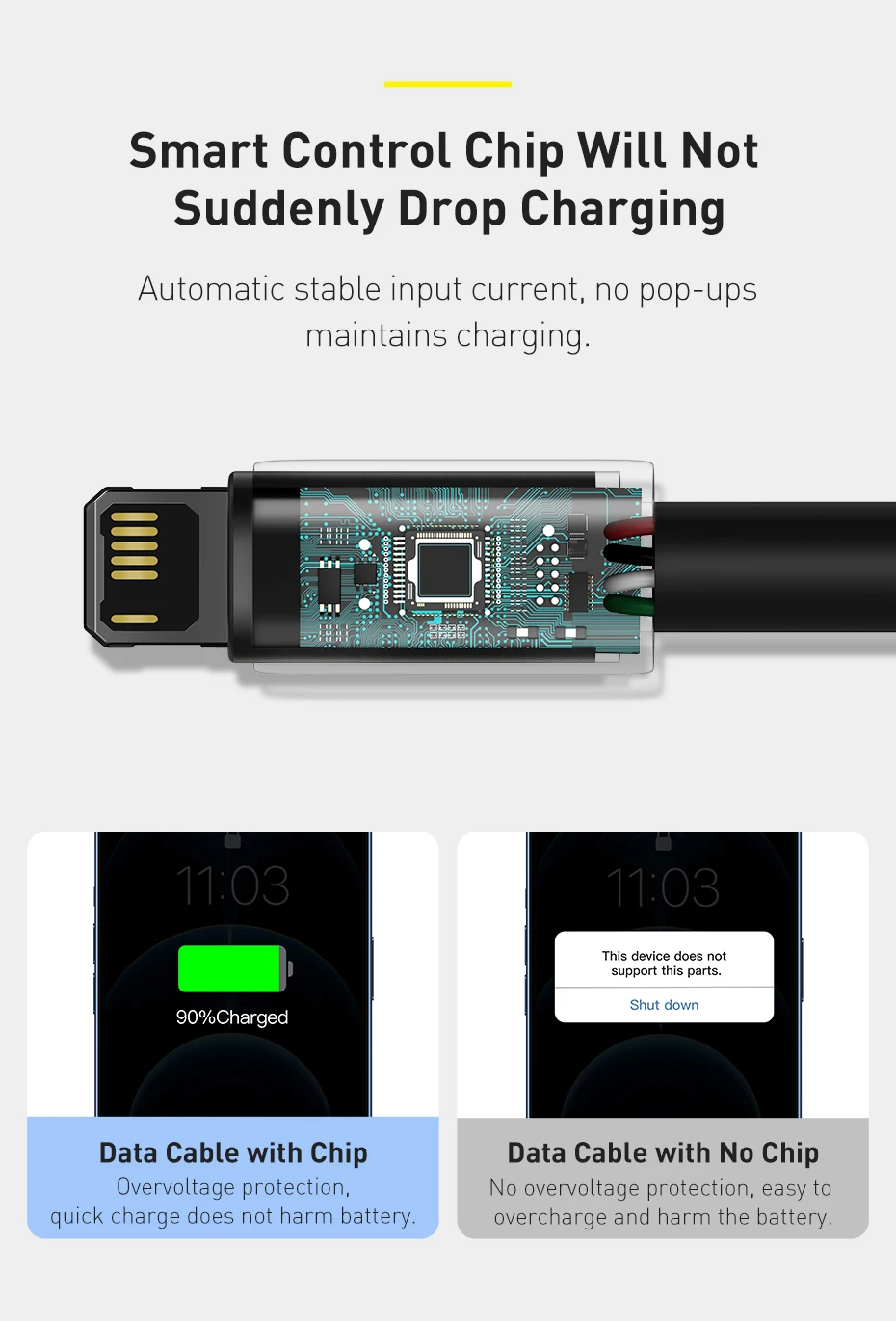 Comprar Cable USB Baseus 2.4A para iPhone 14 13 Pro Max XR Xs Cable de carga rápida para iPhone 12 cargador línea de datos USB