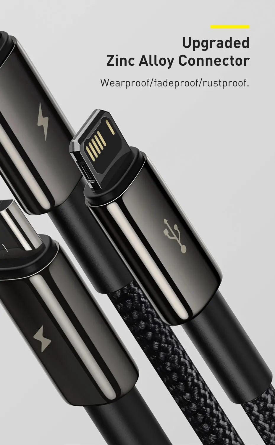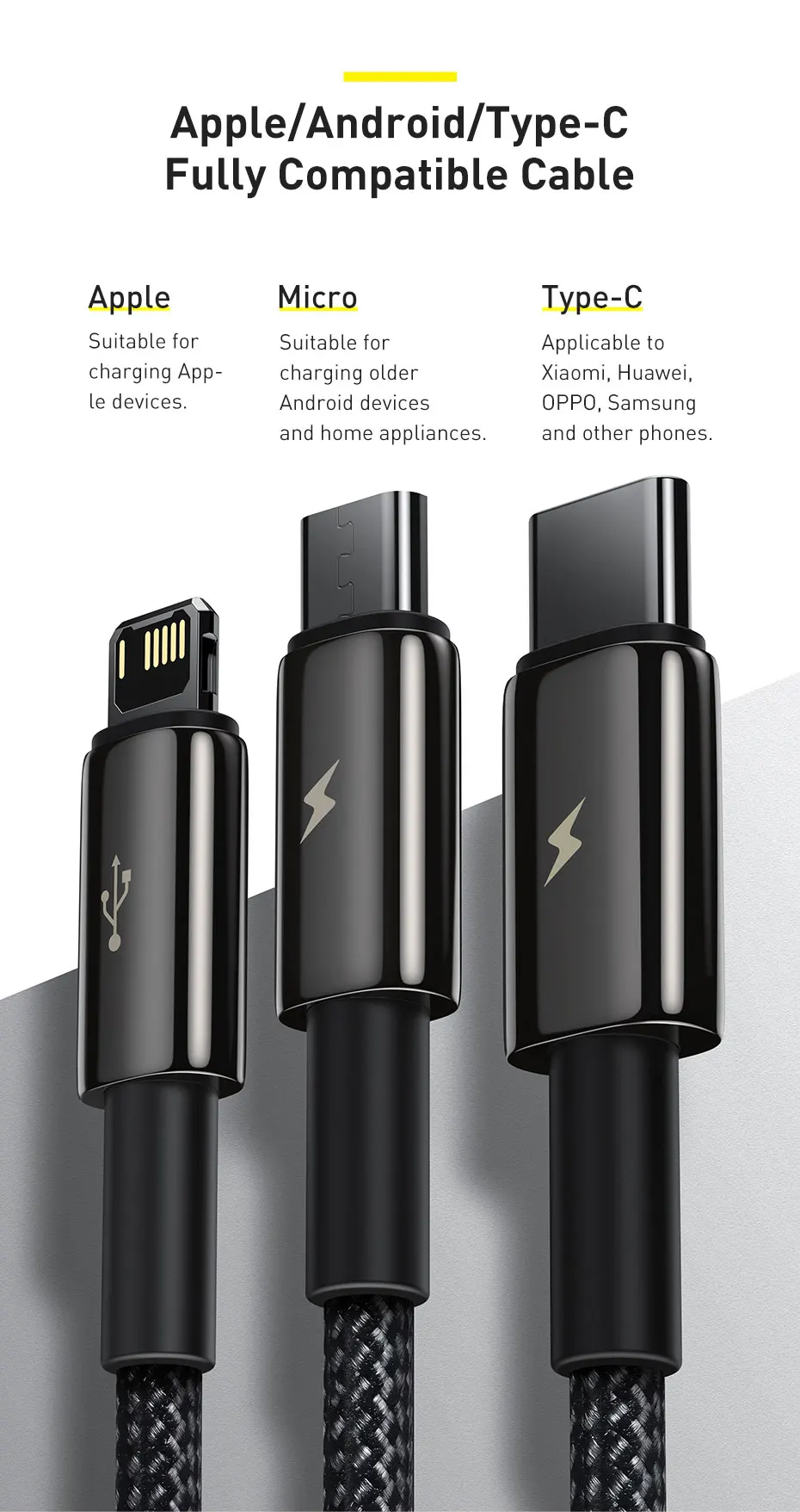 Comprar Cable USB Baseus 3 en 1 para iPhone 13 12 11 Pro Max Cable de teléfono USB tipo C de carga rápida para Huawei Xiaomi Samsung Micro cargador