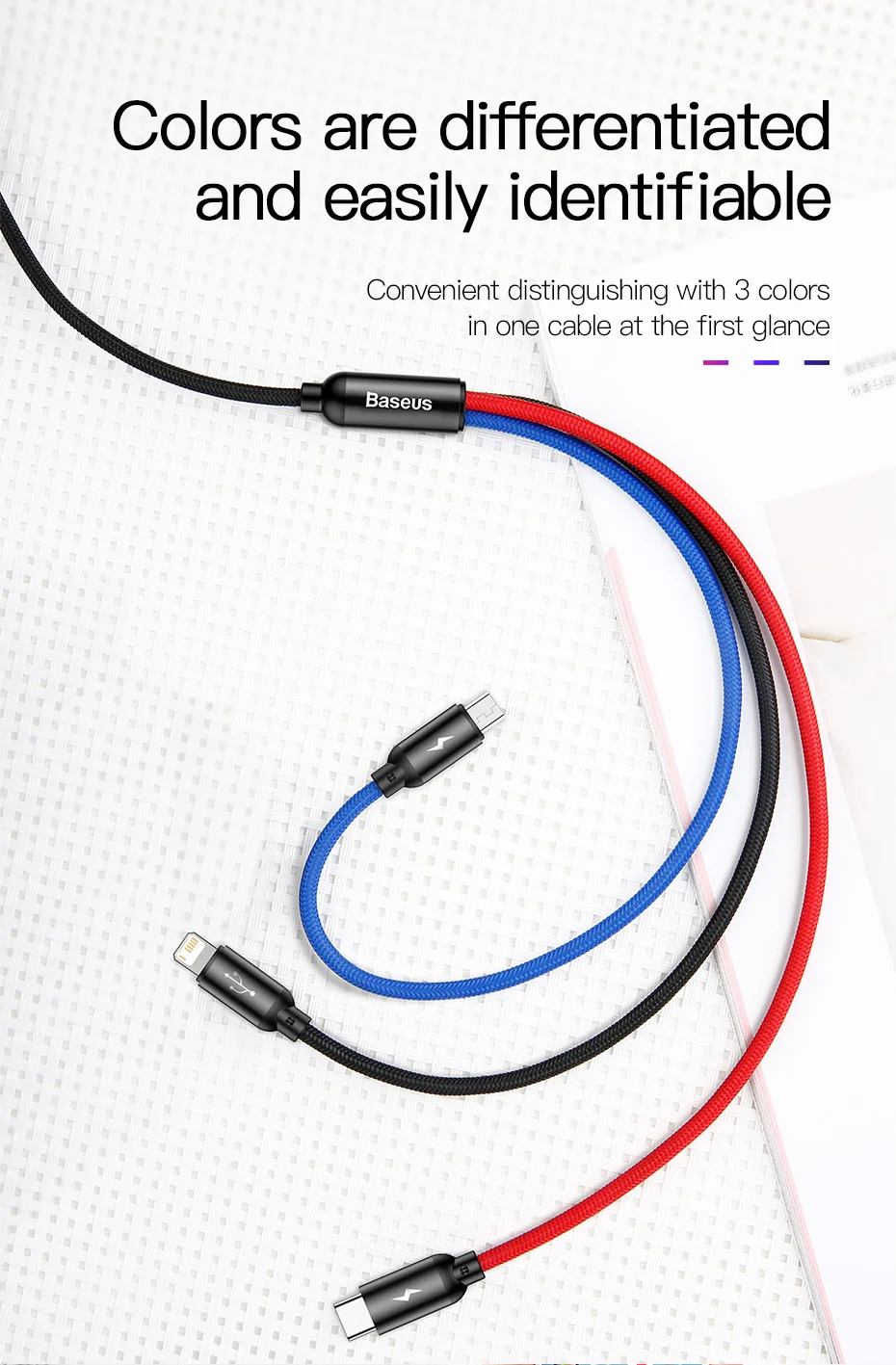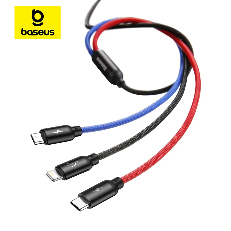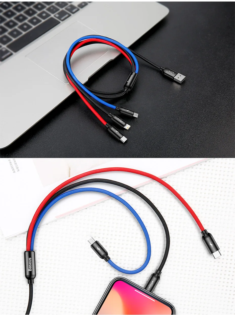 Comprar Cable USB Baseus 3 en 1 tipo C para Samsung Xiaomi Mi Cable 4 en 1 para iPhone 14 13 12X11 Pro Max cargador Cable Micro USB