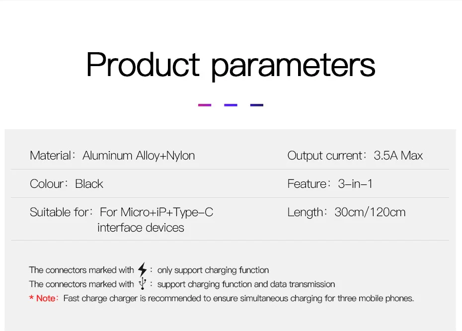 Nota: La carga rápida Baseus de 7 pines y la carga no rápida de 6 pines sirven solo para indicar el tipo de carga.No afectan el rendimiento y la eficiencia de la carga.