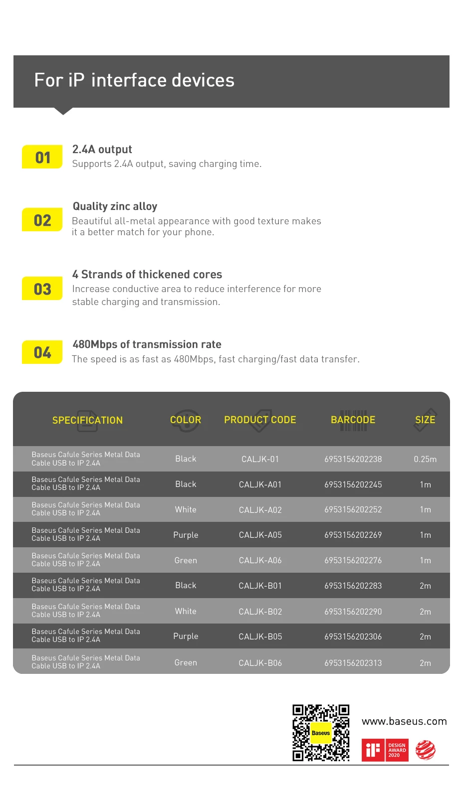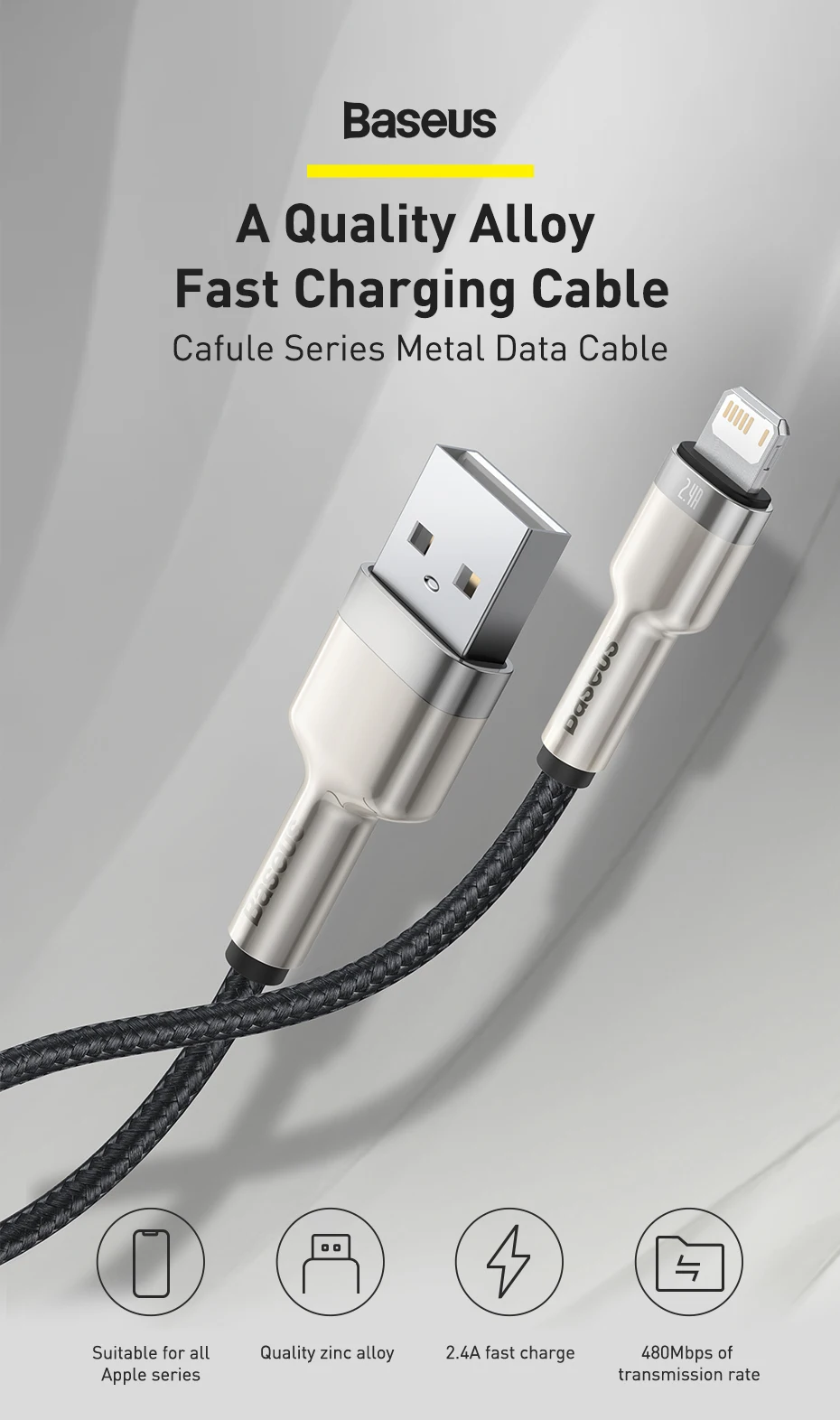 Comprar Cable USB Baseus para iPhone 12 11 Pro Xs Max Mini X Xr 2.4A Cable de datos de teléfono móvil de carga rápida para iPhone 8 7Plus 6 Cable