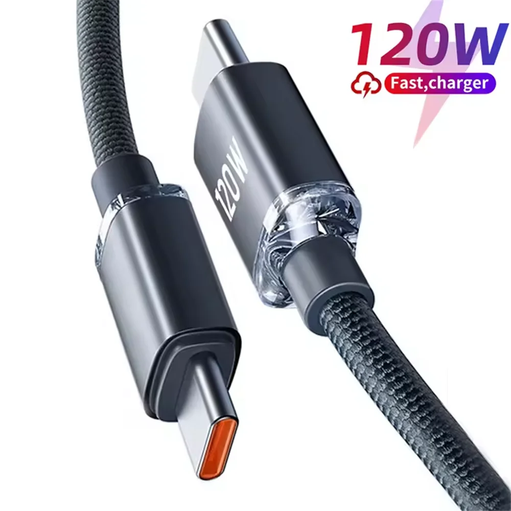 Comprar Cable USB C de 120W y 6A PD, cargador de teléfono de carga súper rápida, Cable de datos para Samsung, Xiaomi, Huawei, tipo C a tipo C, Cable de carga rápida