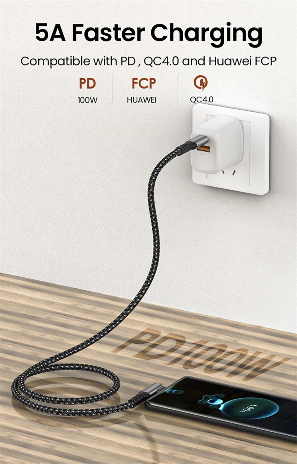 Comprar Cable USB C 3,2 Gen 2 tipo C a USB C 20Gbps 4K @ 60HZ Cable de datos de vídeo VR 5A 100W PD carga rápida para ordenador portátil Macbook Pro iPad