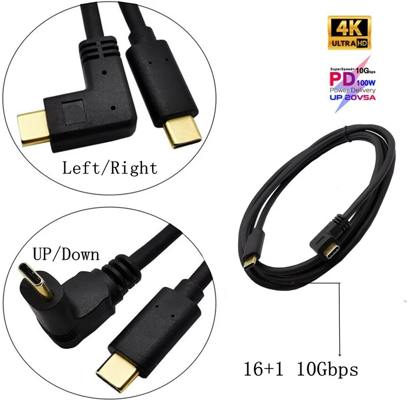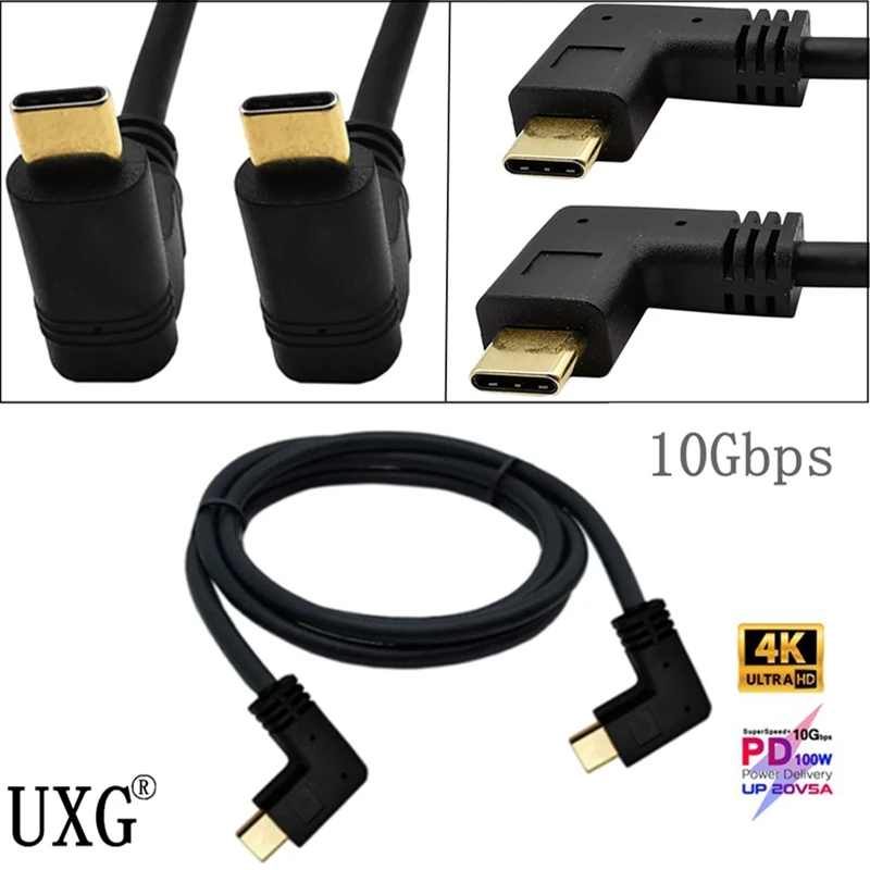 Comprar Cable de USB-C de 90 grados a USB-C, Cable de carga rápida de 0,3 M, 1M, ángulo derecho e izquierdo de 90 grados, USB 3,1 tipo C macho a macho, GEN2 10gbps