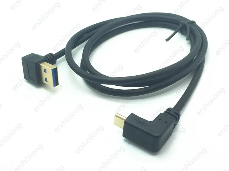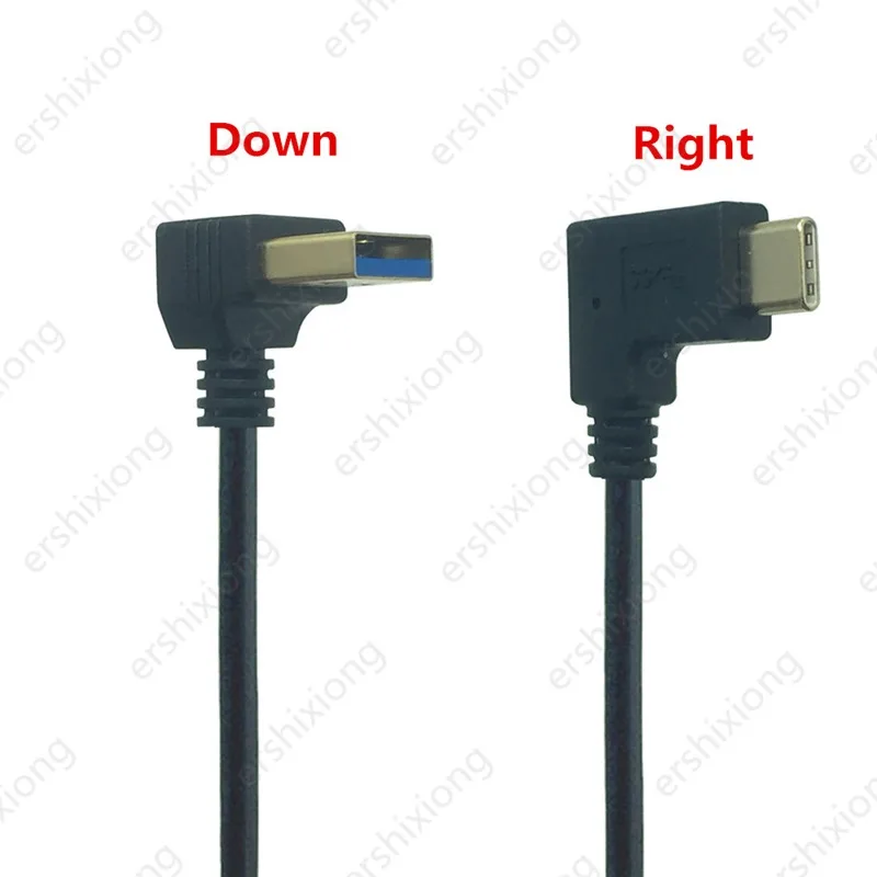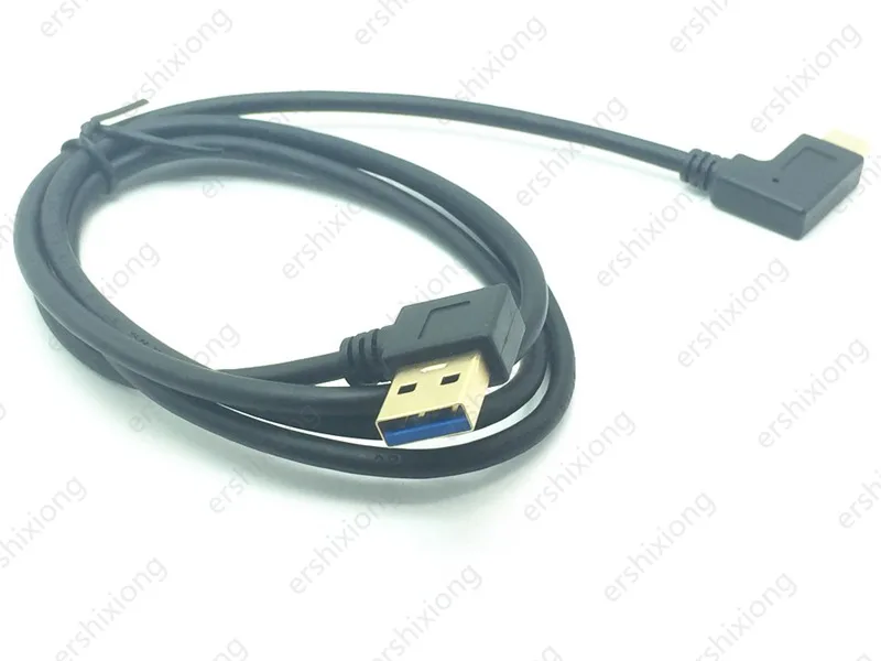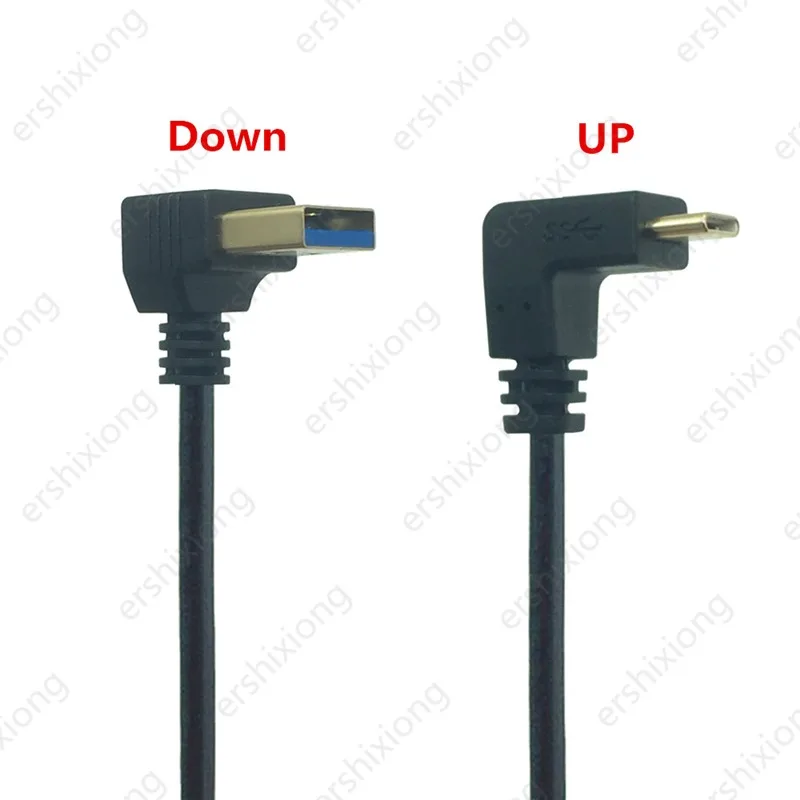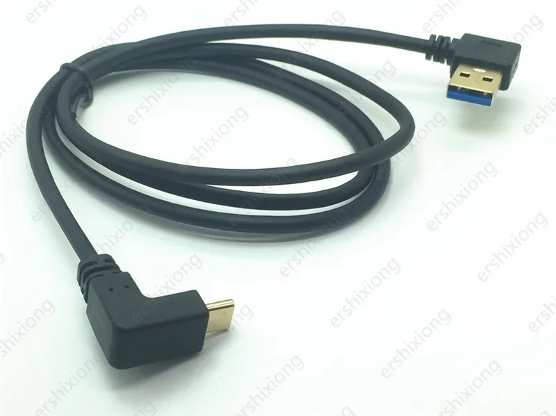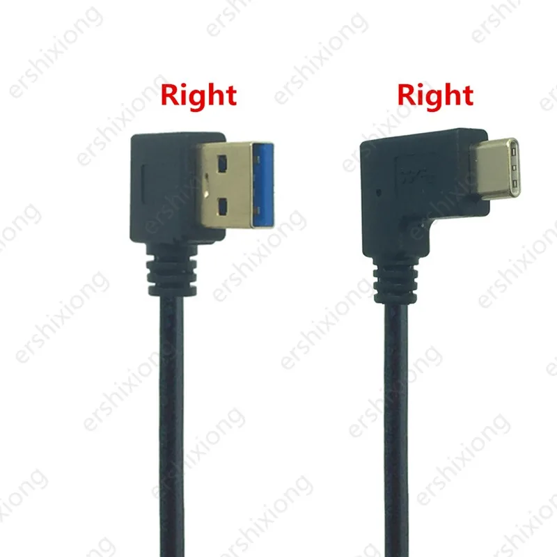 Cable de datos de doble curvatura USB 3.0 tipo C estándar, cable de carga de datos para ordenador portátil, teléfono móvil, 1 metro