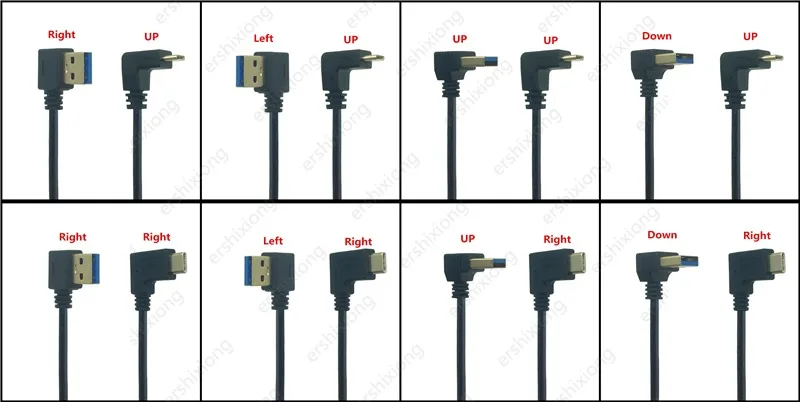 Comprar Cable USB C 90 grados USB 3,0 A a USB tipo C ángulo izquierdo/derecho sincronización de datos y cable de carga adaptador convertidor USB-C doble ángulo