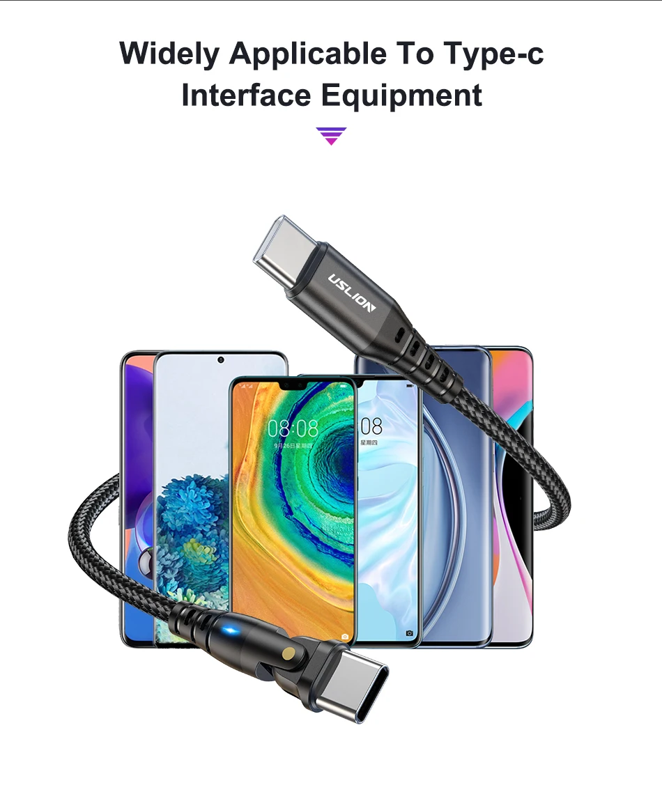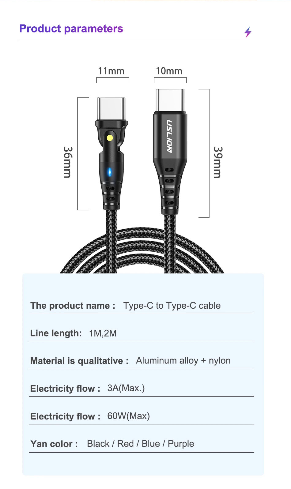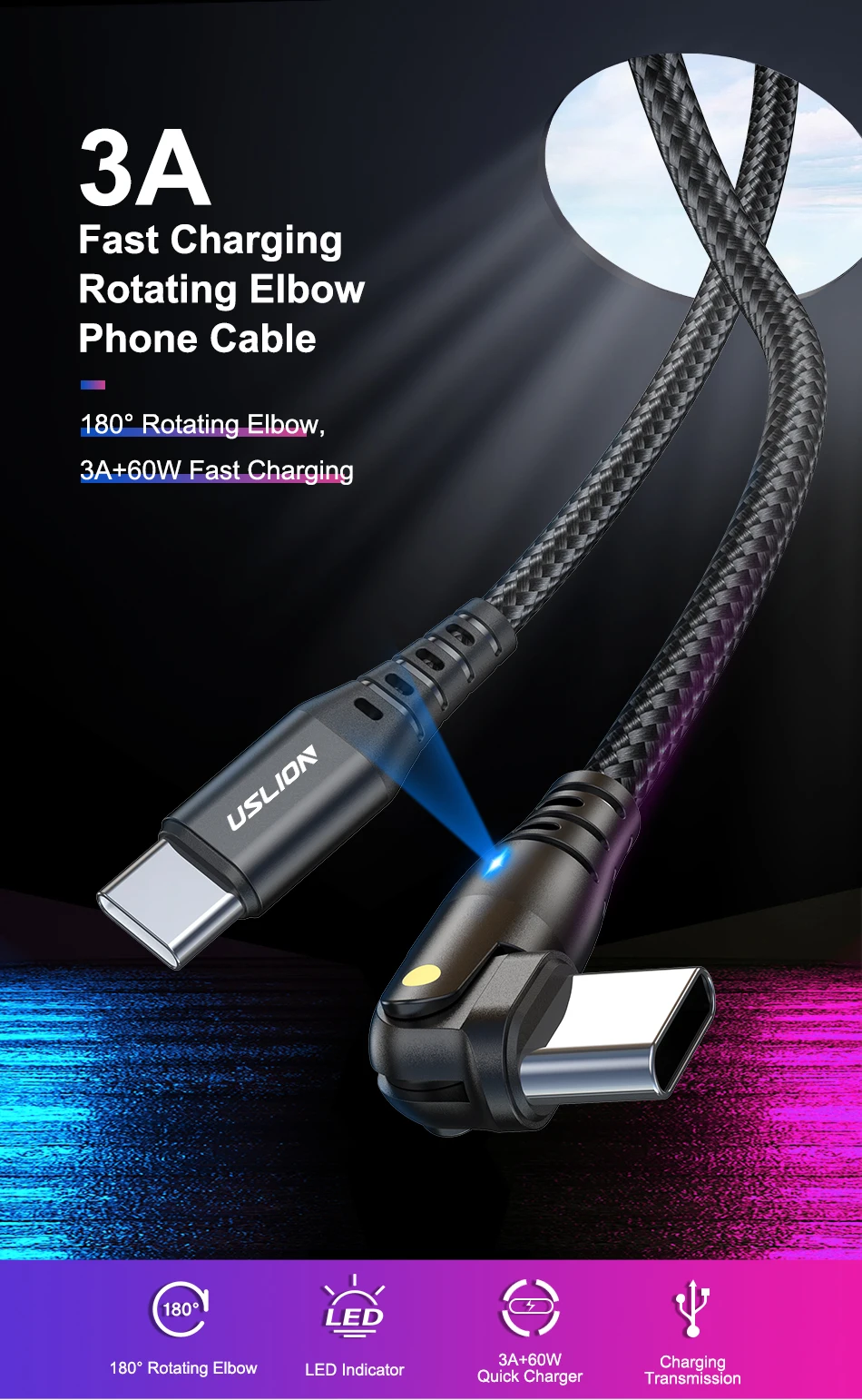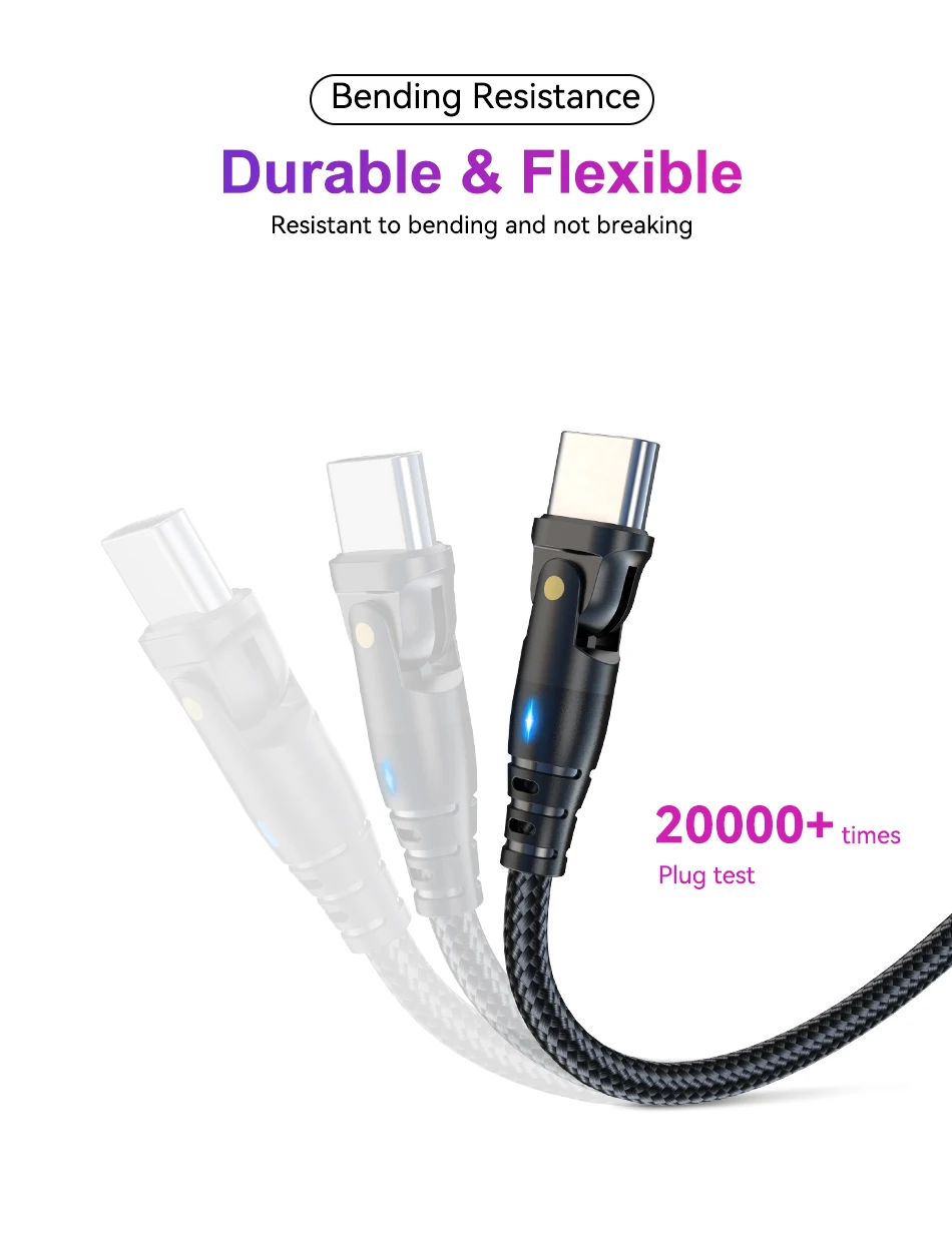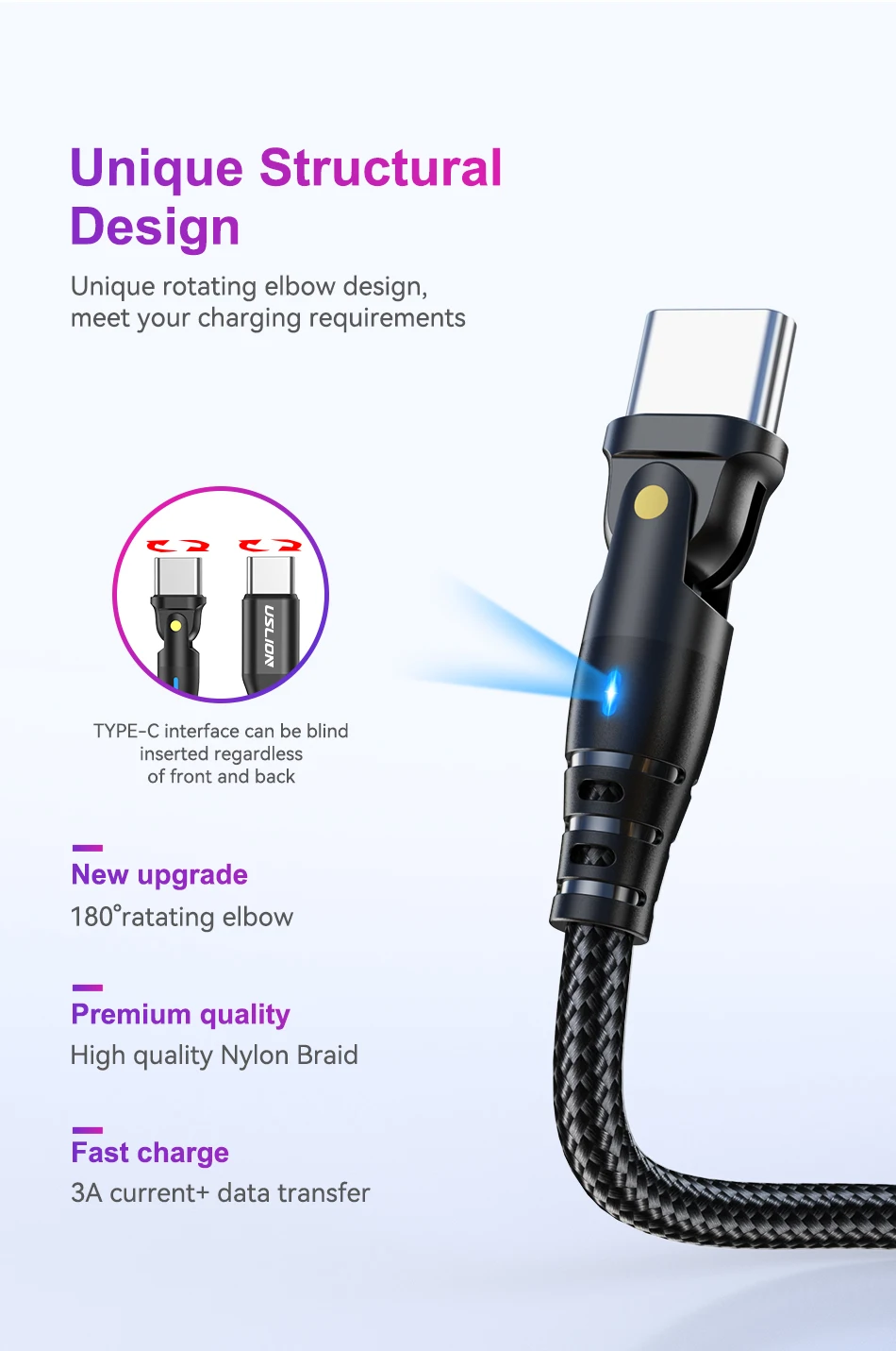 Comprar Cable USB C a USB C de 60W, Cable de datos LED tipo C 3A, Cable de carga rápida para iPhone Xiaomi, Cable de carga USB giratorio 180 para teléfono móvil