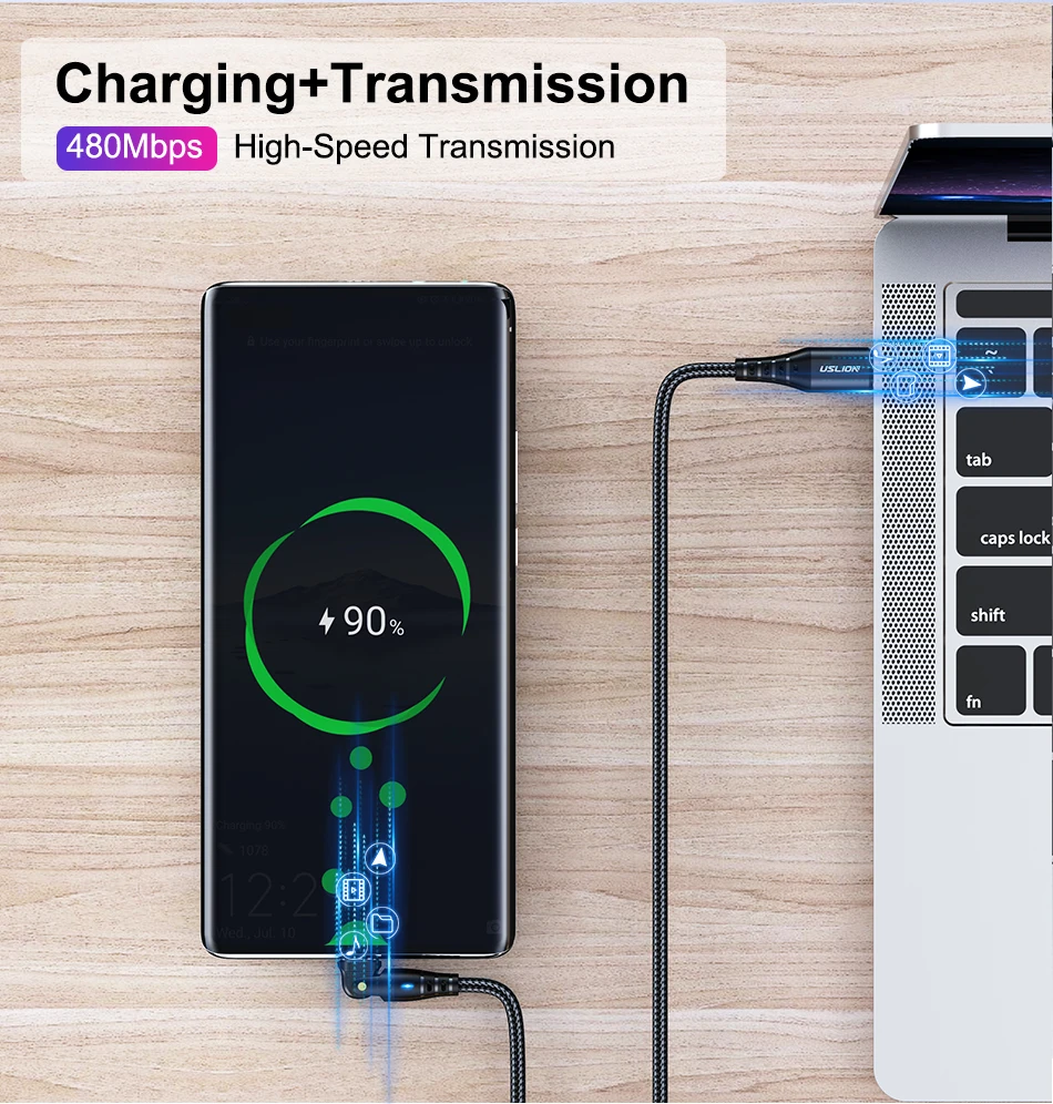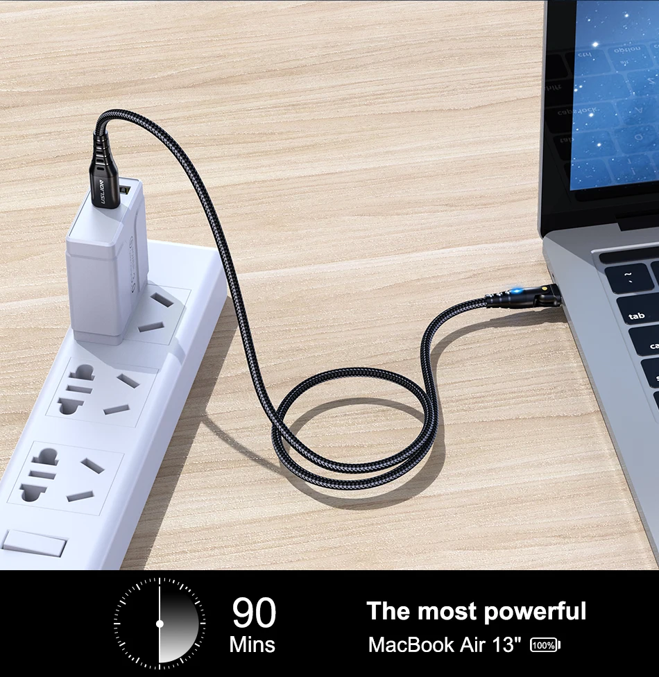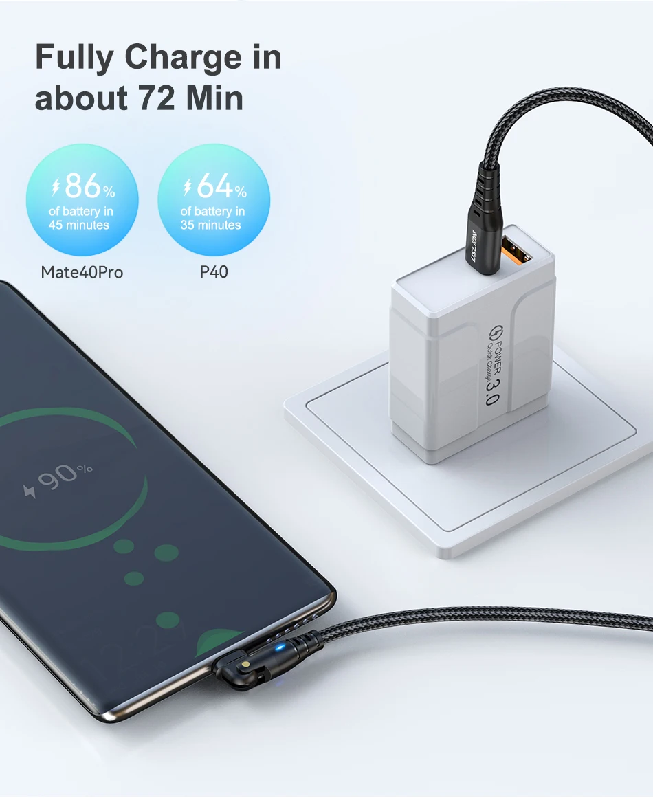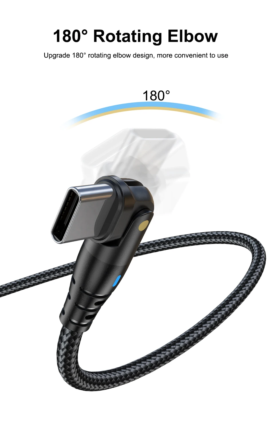 【 Cable de teléfono con codo giratorio de carga rápida 60W 3A 】