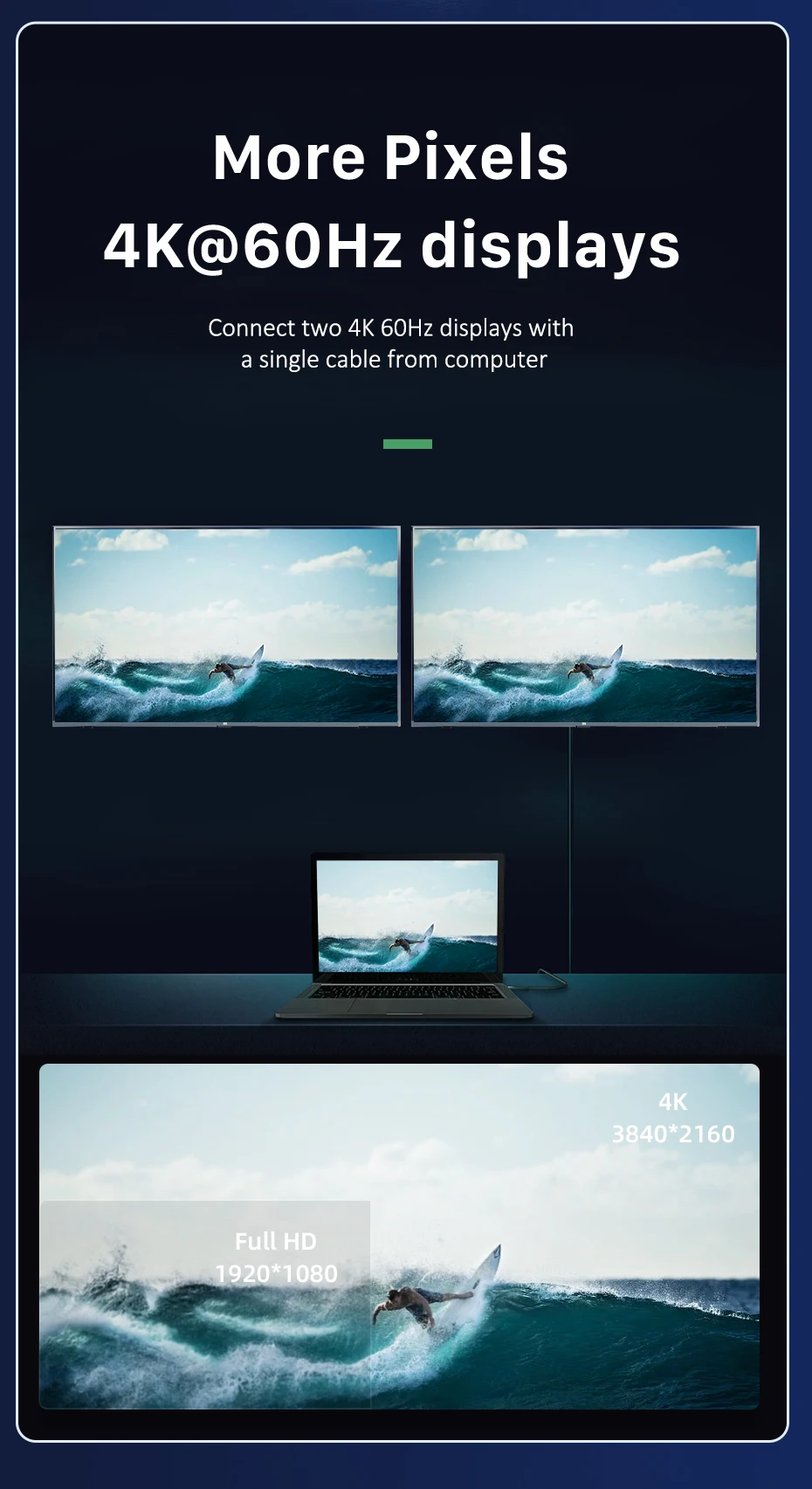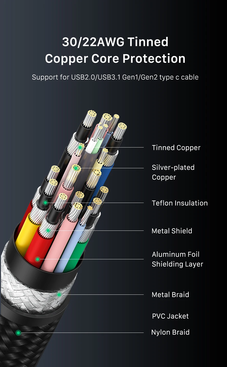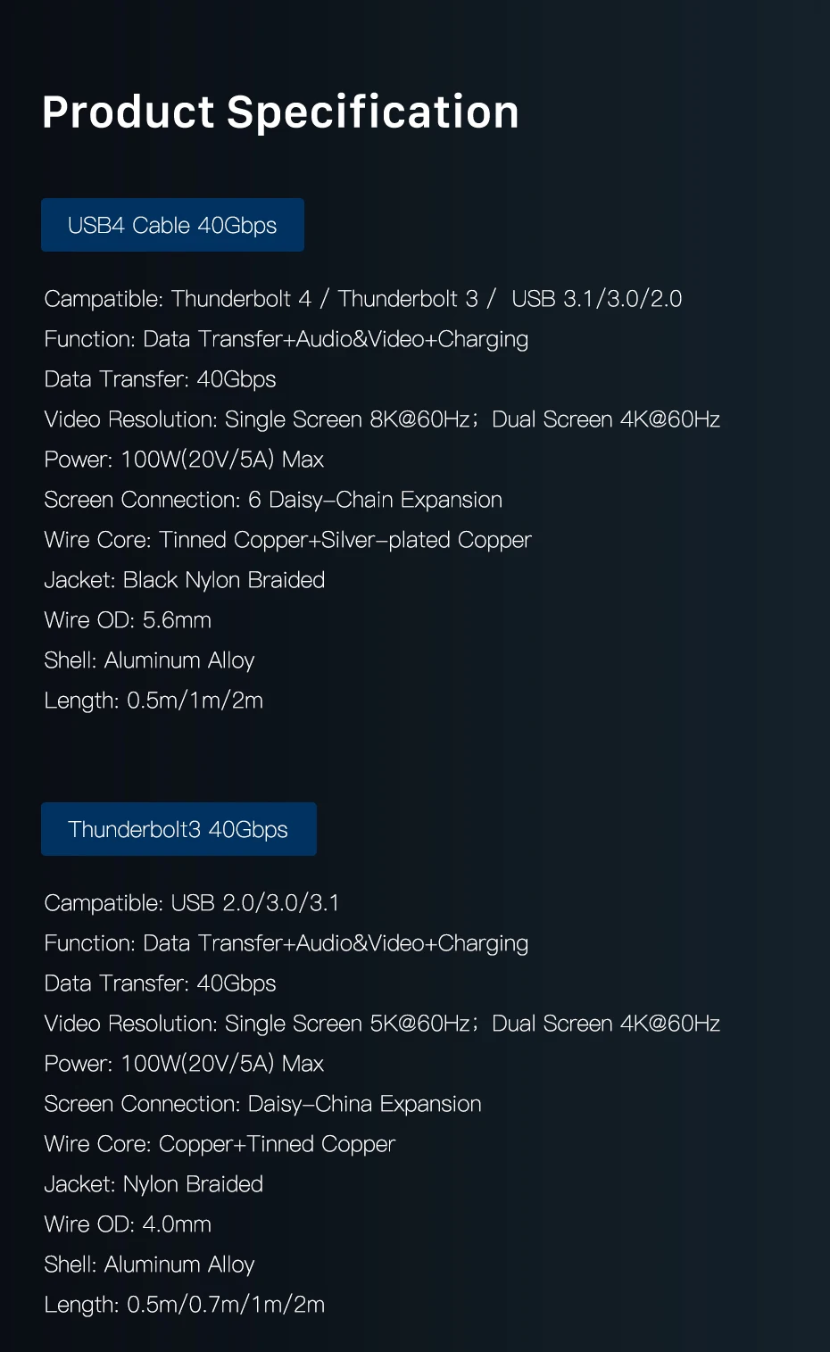 【Garantía de calidad ultra alta】Utilizamos el mejor chip, cable y proceso de producción de Cypress para alcanzar 40 Gbps.Conector de aluminio 3D mejorado, cable trenzado de nailon de primera calidad que agrega durabilidad adicional y no se enreda.El diseño especial de alivio de tensión puede soportar más de 15000 pruebas de flexión.