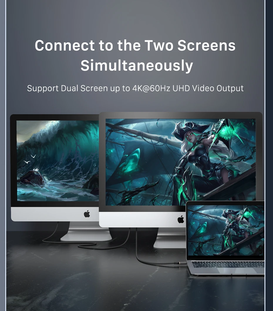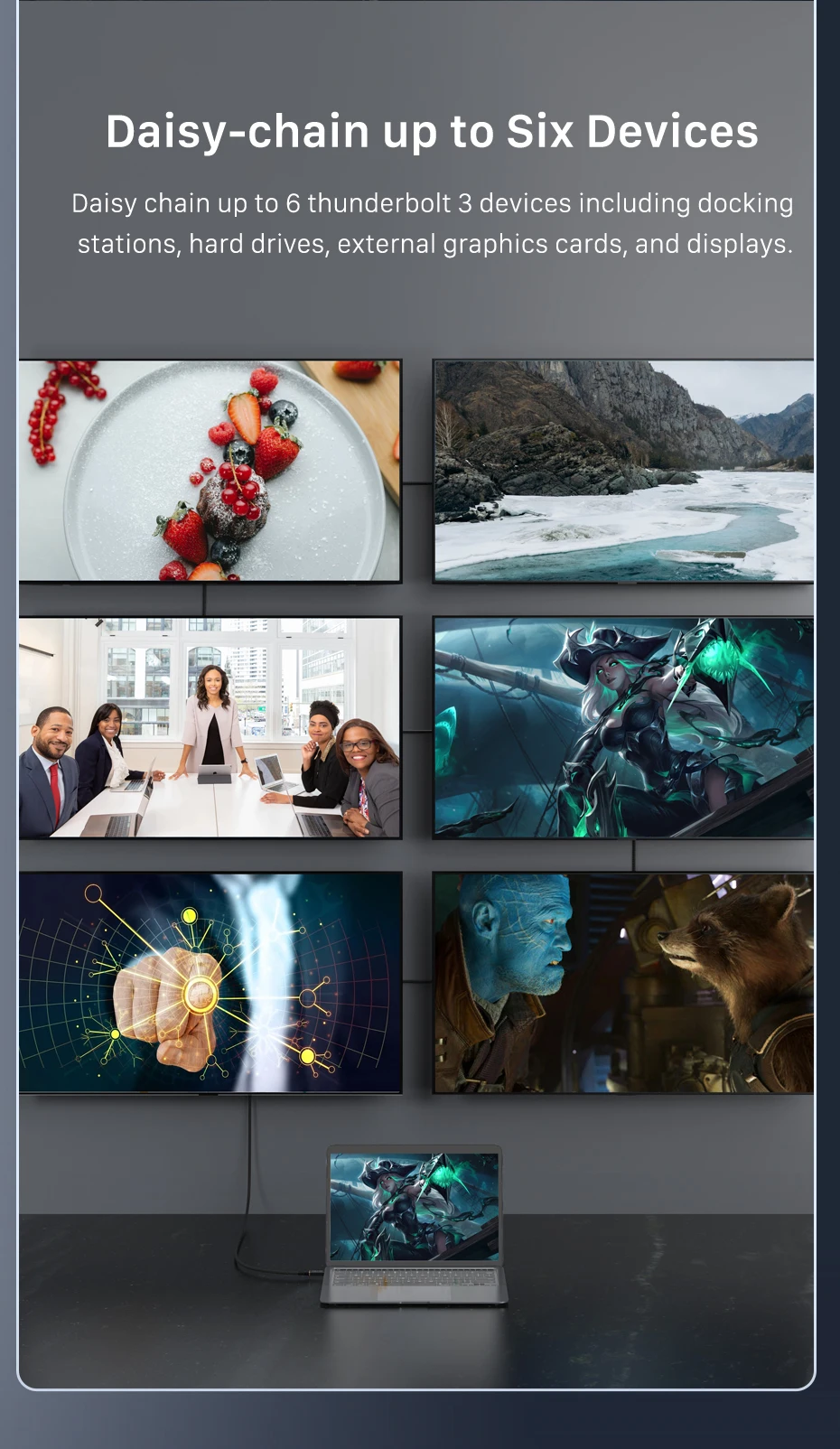 【Vídeo 5K@60Hz】Encadene hasta 6 dispositivos Thunderbolt, incluidas estaciones de acoplamiento, discos duros, tarjetas gráficas externas y pantallas.Disfrutando de una resolución de vídeo ultra HD, el ancho de banda de 40 Gbps permite vídeo dual de 4K a 60 Hz o un solo 5K a 60 Hz