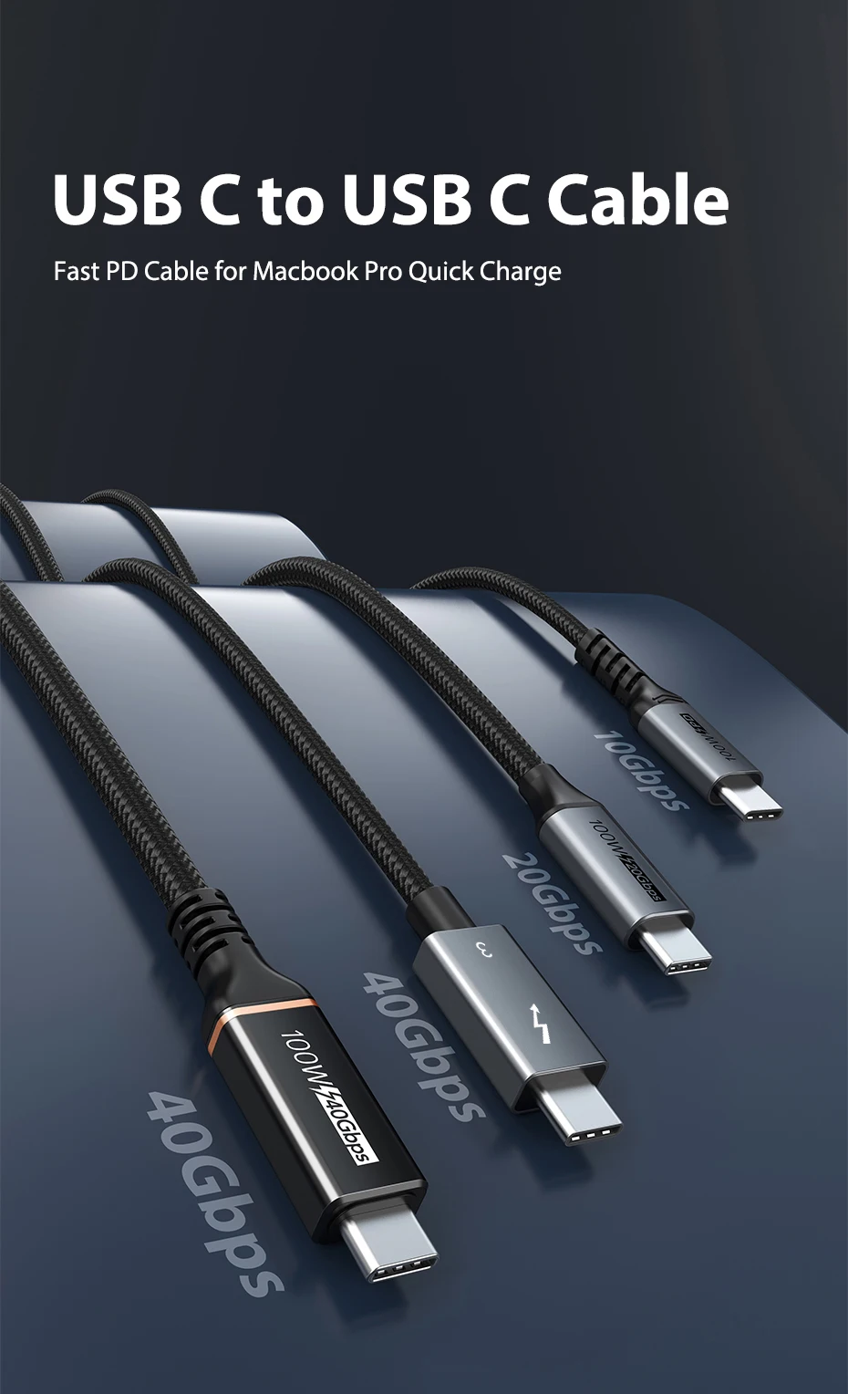 【Garantía de calidad ultra alta】Utilizamos el mejor chip, cable y proceso de producción de Cypress para alcanzar 40 Gbps.Conector de aluminio 3D mejorado, cable trenzado de nailon de primera calidad que agrega durabilidad adicional y no se enreda.El diseño especial de alivio de tensión puede soportar más de 15000 pruebas de flexión.
