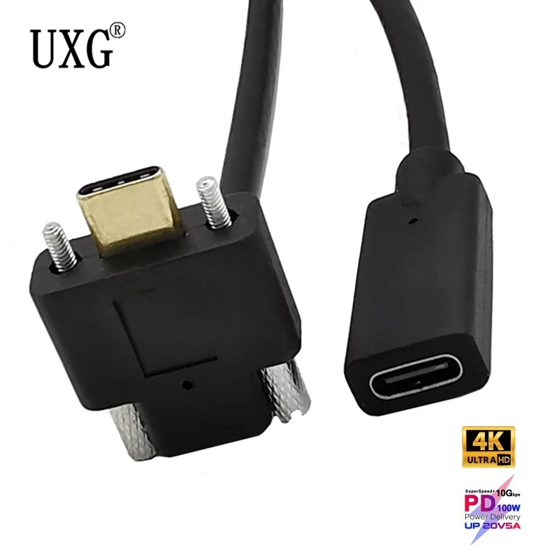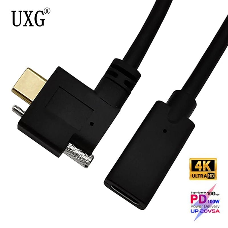 Cable de extensión USB C recto y 90 grados y 270 grados en ángulo doble tornillo de bloqueo USB 3,1 tipo C macho a tipo C macho y hembra con orificio de tornillo de montaje en panel 10Gbps 60Hz