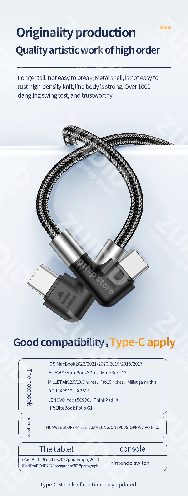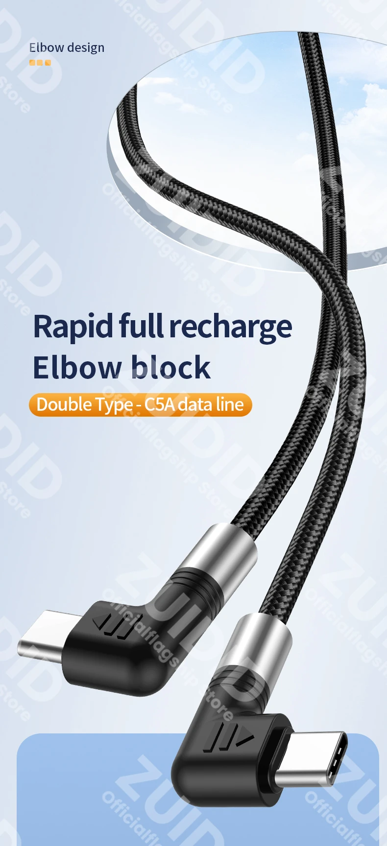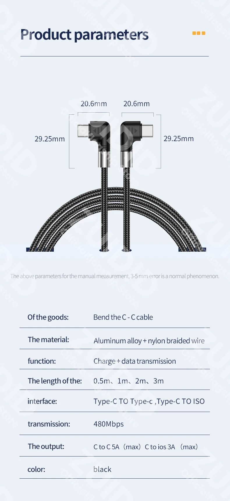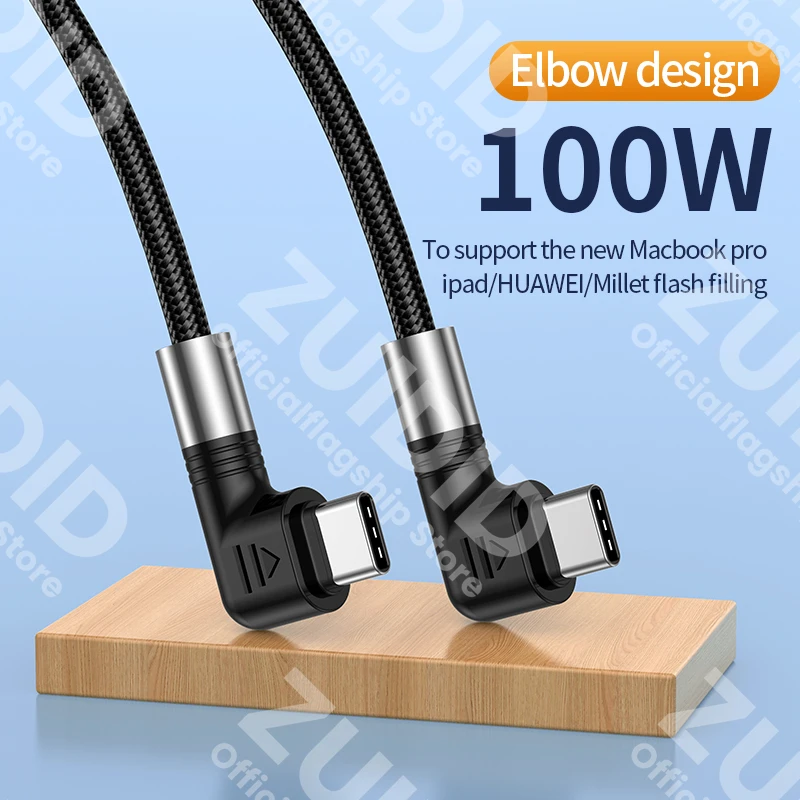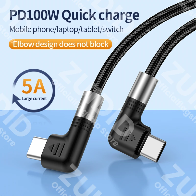 Cable USB C a USB tipo C de doble codo para MacBook Pro QC4.0 PD 100W 5A carga rápida para Samsung S21 Xiaomi Cable de carga 1/2M