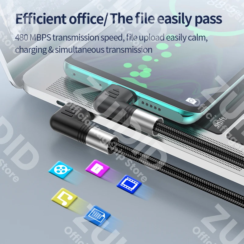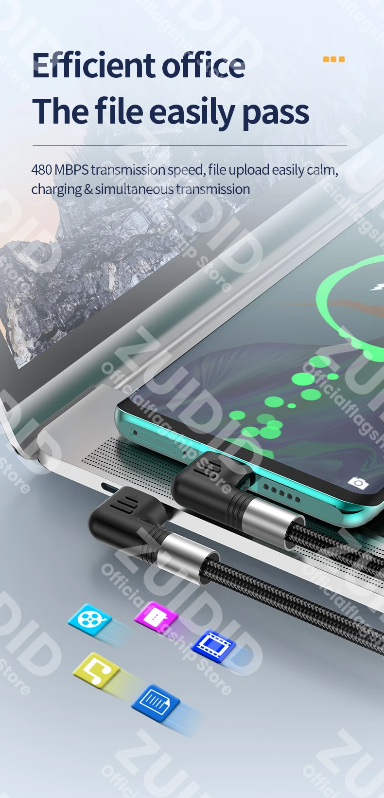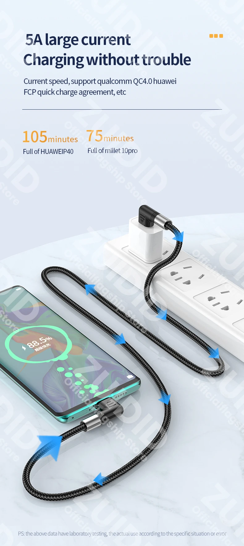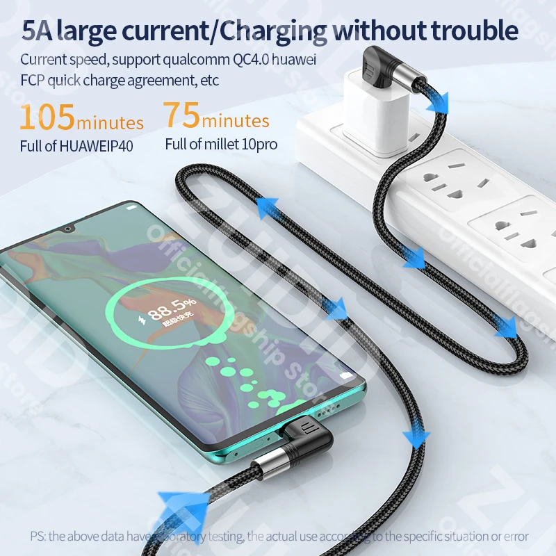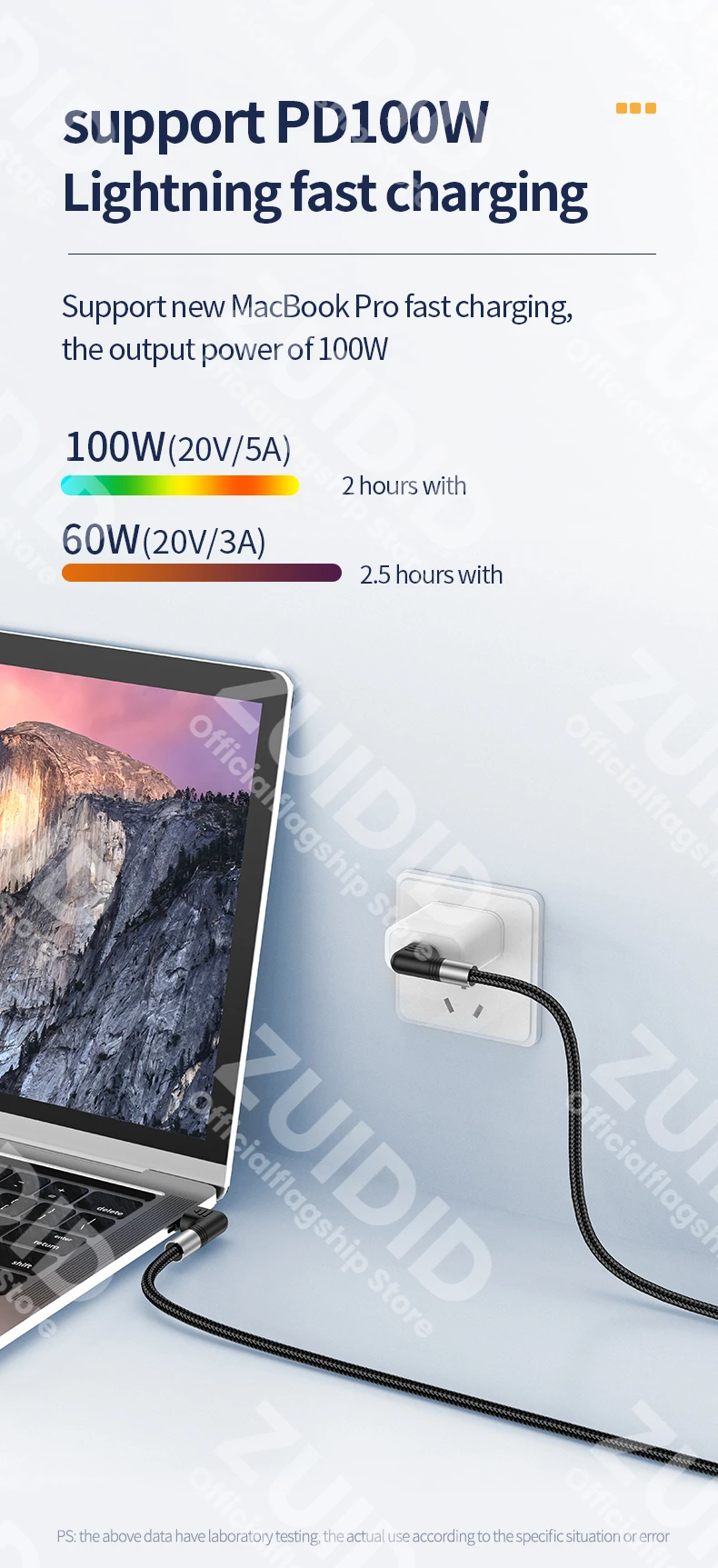Cable USB C a USB tipo C de doble codo para MacBook Pro QC4.0 PD 100W 5A carga rápida para Samsung S21 Xiaomi Cable de carga 1/2M