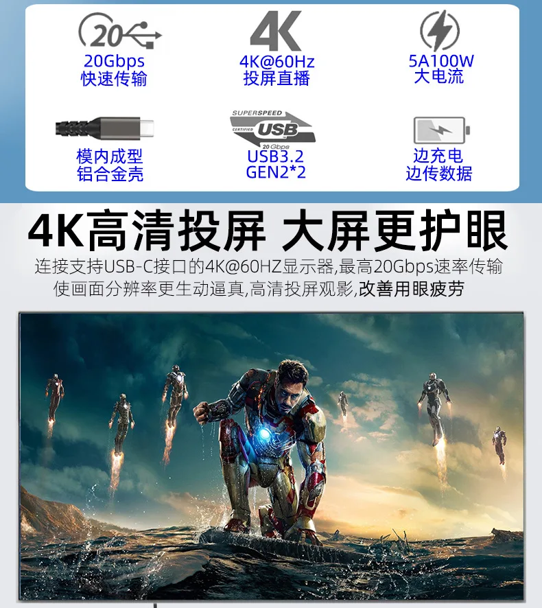 Comprar Cable USB C de alta calidad 3,2, 20Gbps Gen2, tipo C, 5A, 100W, PD, carga rápida, cable de Usb-c a Usb-c, Cable de datos 4K60Hz para IPhone 15 Pro Max