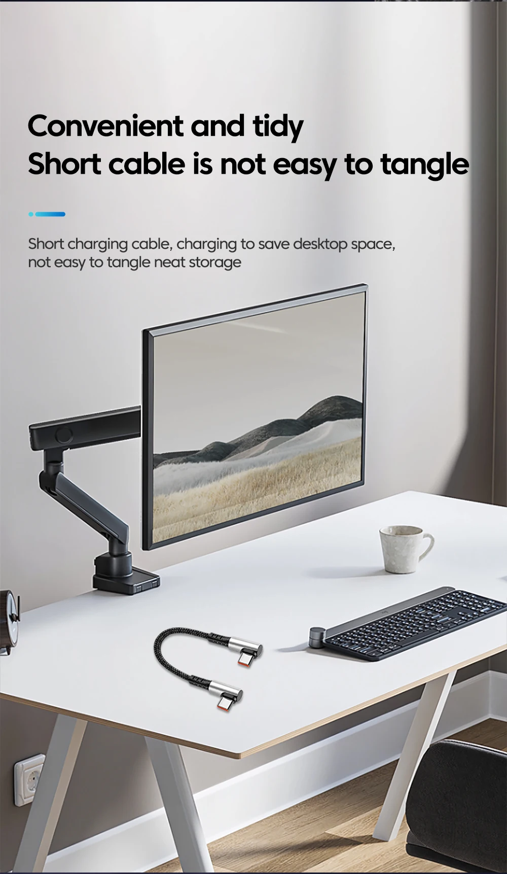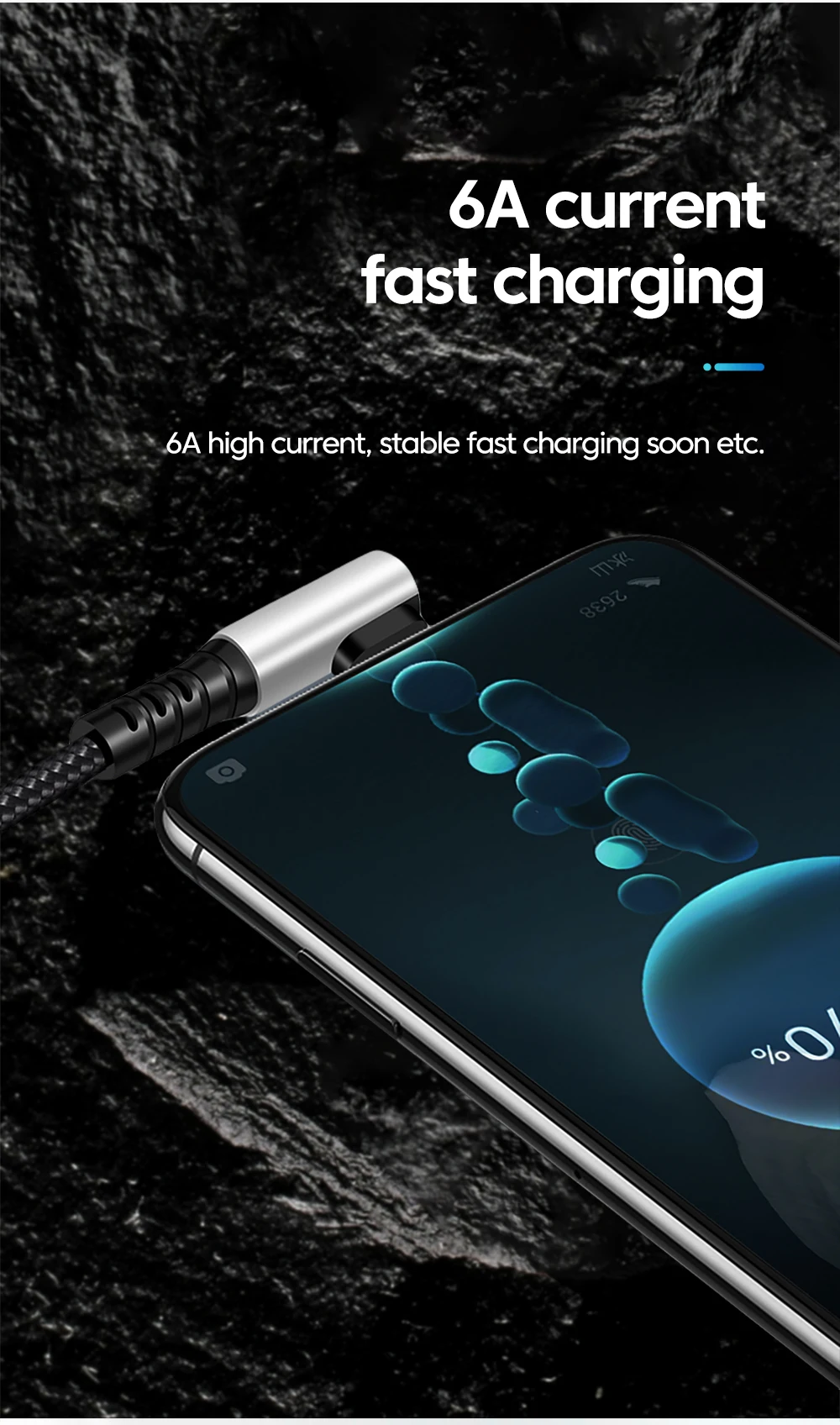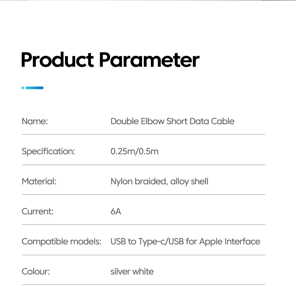 Cable USB C de carga rápida de 0,25 M/0,5 M 6A, Cable USB A/tipo C a tipo C de doble codo para iPhone 15, Cable de datos de banco de energía corto móvil