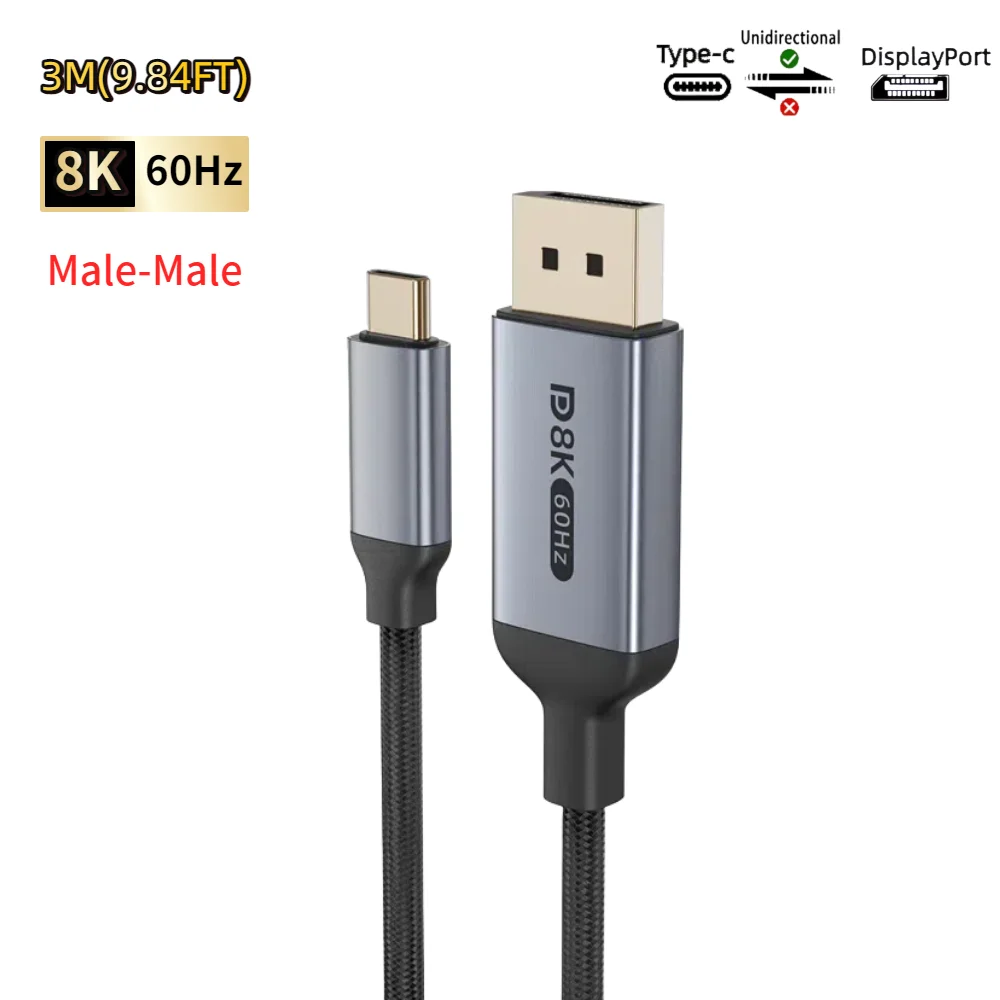 El cable USB C a DisplayPort 2.1 admite MAX 16K@30Hz, 8K@60Hz, 5K(5120x2880)@60Hz, 4K(5120x1440)@120Hz, 4K@144Hz, 2K@240Hz/165Hz y puede controlar hasta 4 monitores 1080P.Evite el parpadeo de la pantalla y el recorte de audio y transmita eventos deportivos, películas, fotografías y álbumes sin problemas.