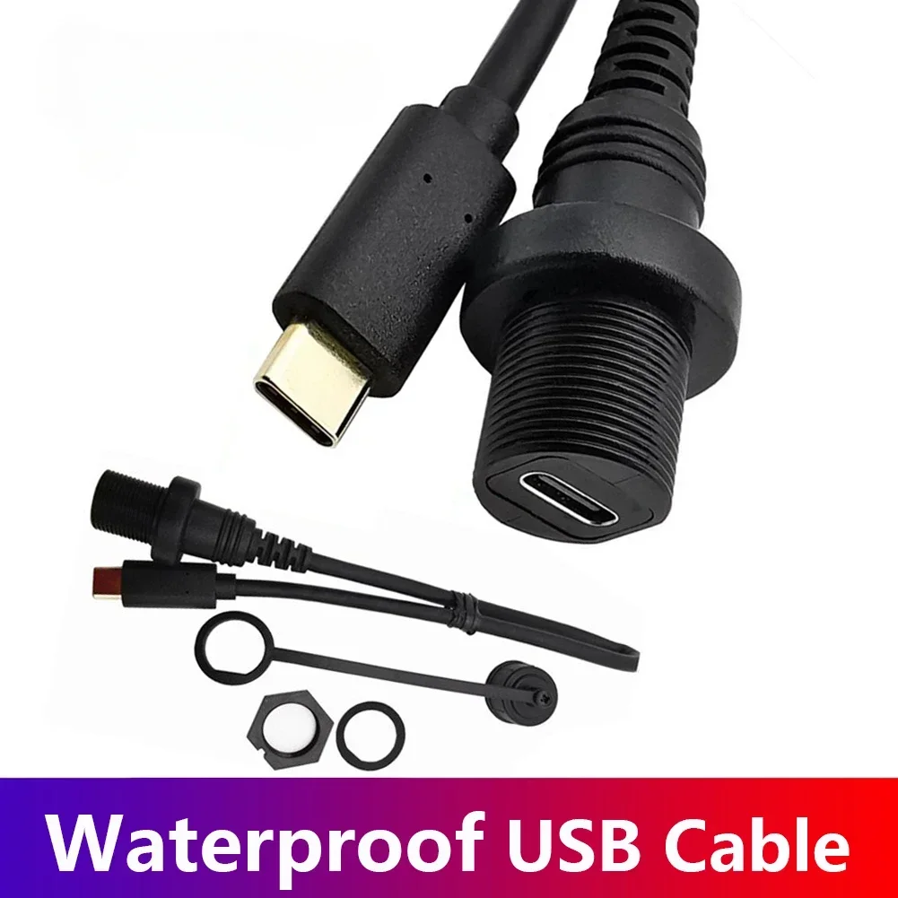 Cable impermeable de alta velocidad de 10Gbps 3,1 tipo C IP 67 macho a hembra montaje en Panel conector a prueba de agua extensión cord30cm