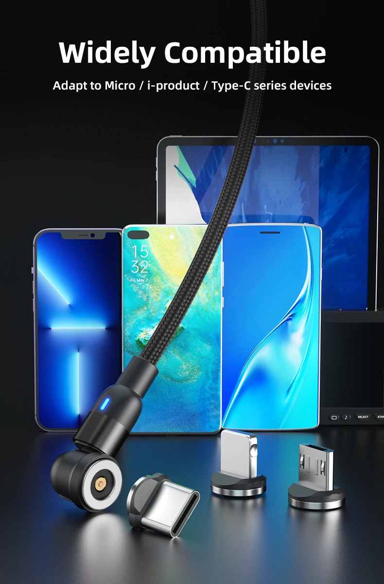 Tres tipos de enchufes magnéticos compatibles con dispositivos tipo C, Micro USB y dispositivos i0S.Seleccione el tipo correcto que necesita al realizar el pedido.