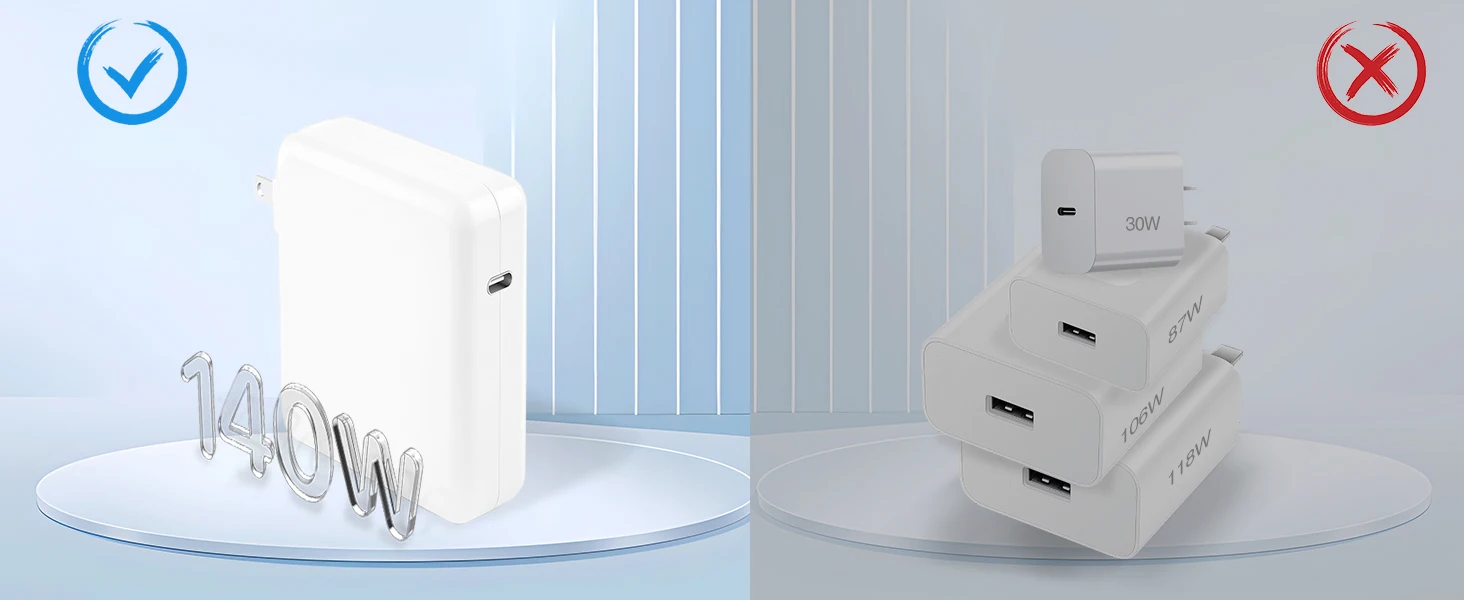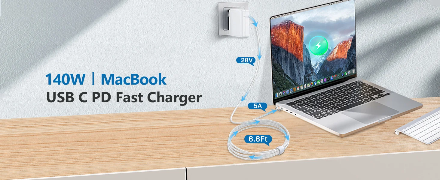Adaptador de corriente USB-C de 140 WCable USB C a magnético 3