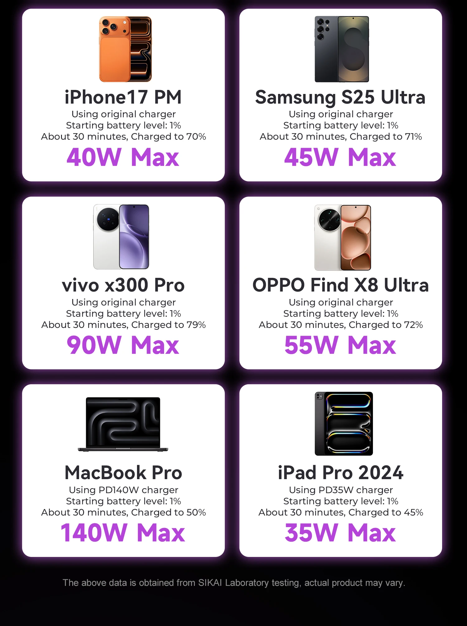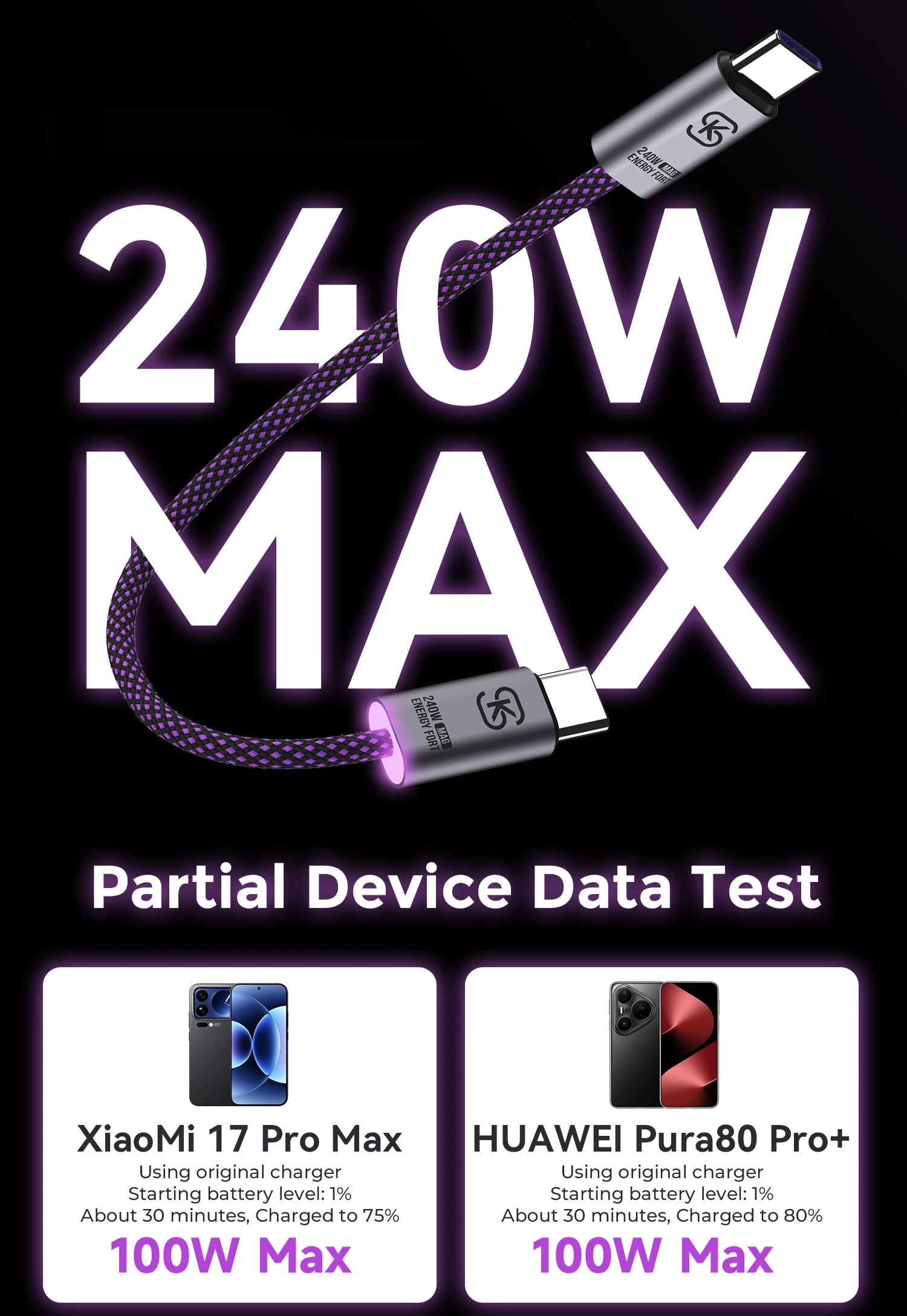 Carga rápida PD 240W, prueba de datos del dispositivo parcial