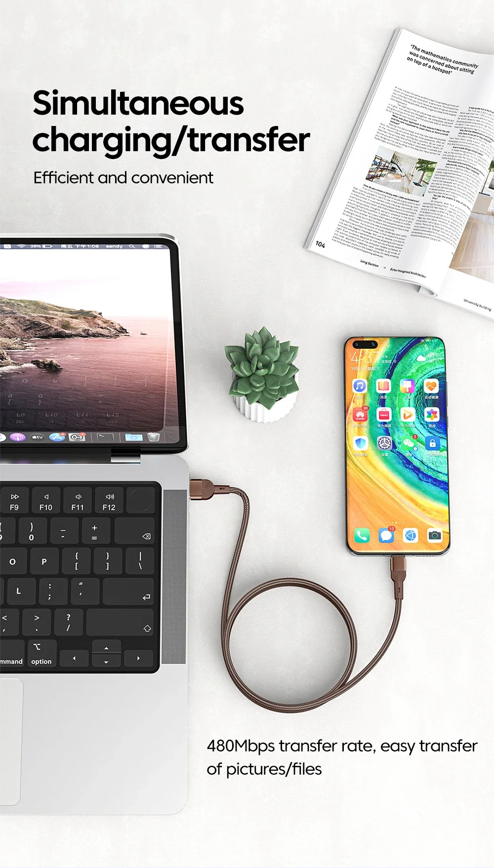 Cable de USB-C PD 100W Cable de carga rápida para Xiaomi 13 Samsung A15 A14 Huawei Macbook Realme POCO F3 Cable tipo C a tipo C