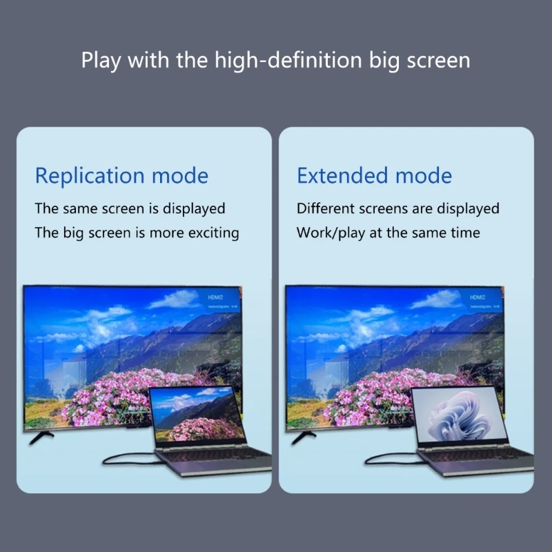 Mejora tu configuración de trabajo o entretenimiento con la expansión de múltiples pantallas, ofreciendo una calidad de imagen clara y fluida para una experiencia inmersiva.