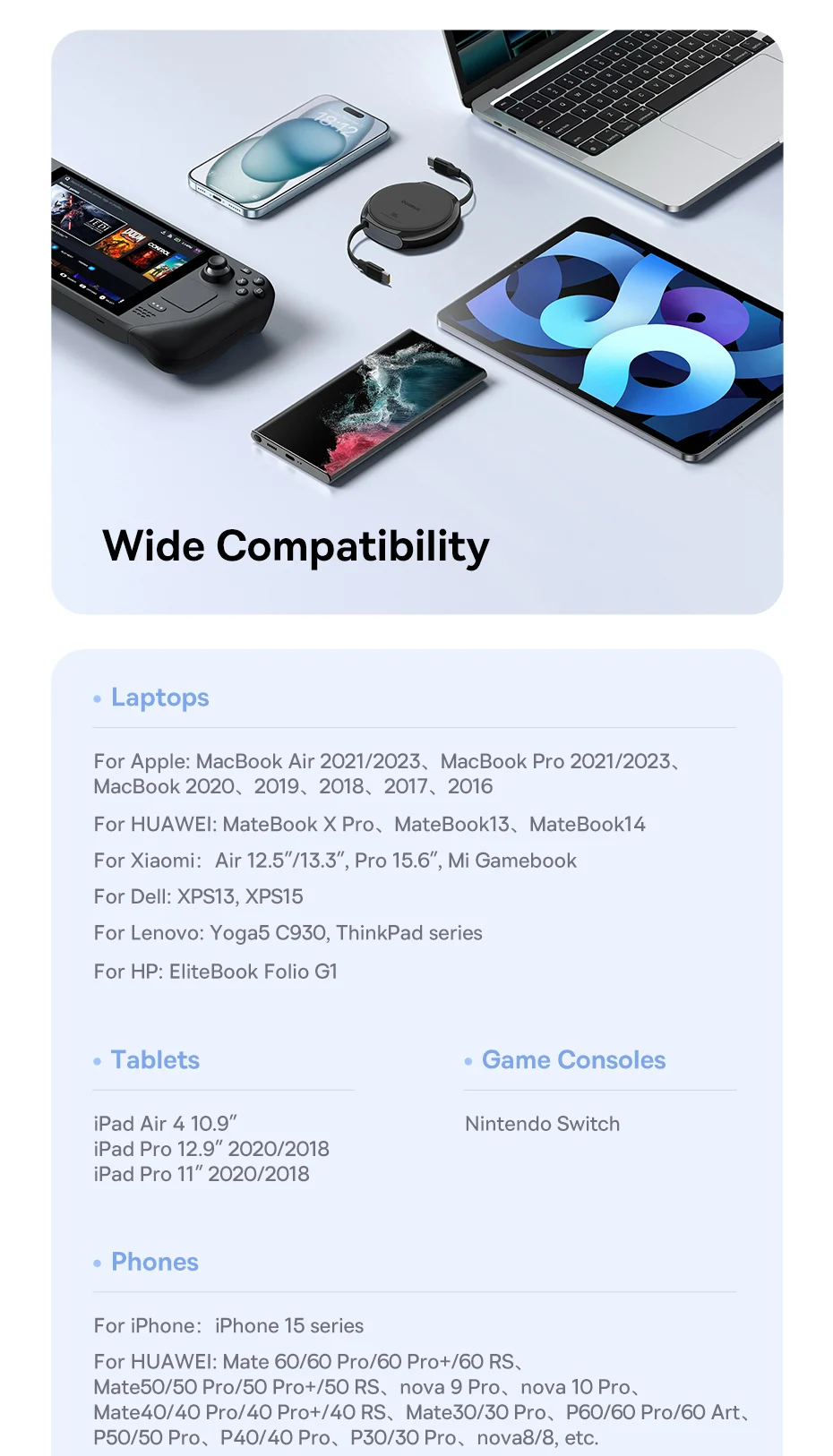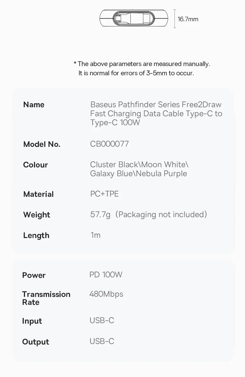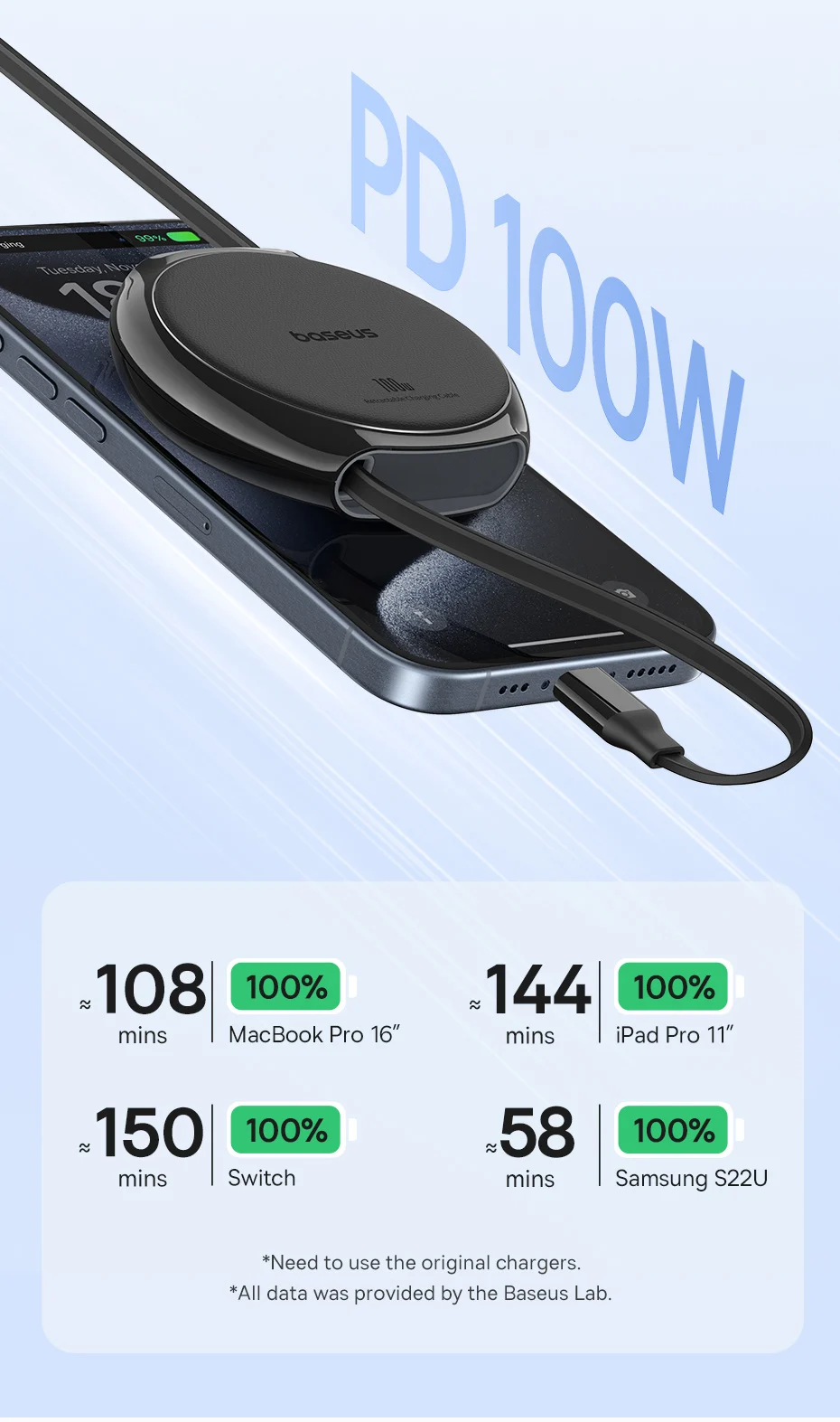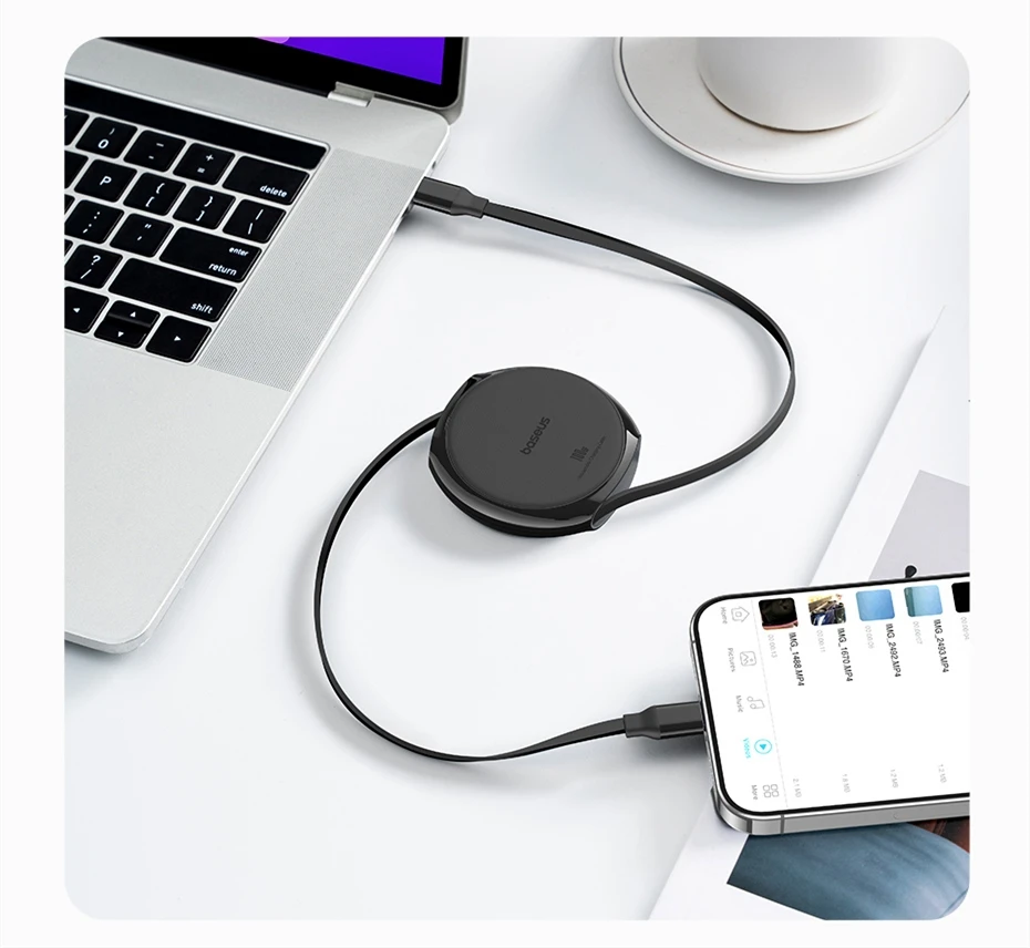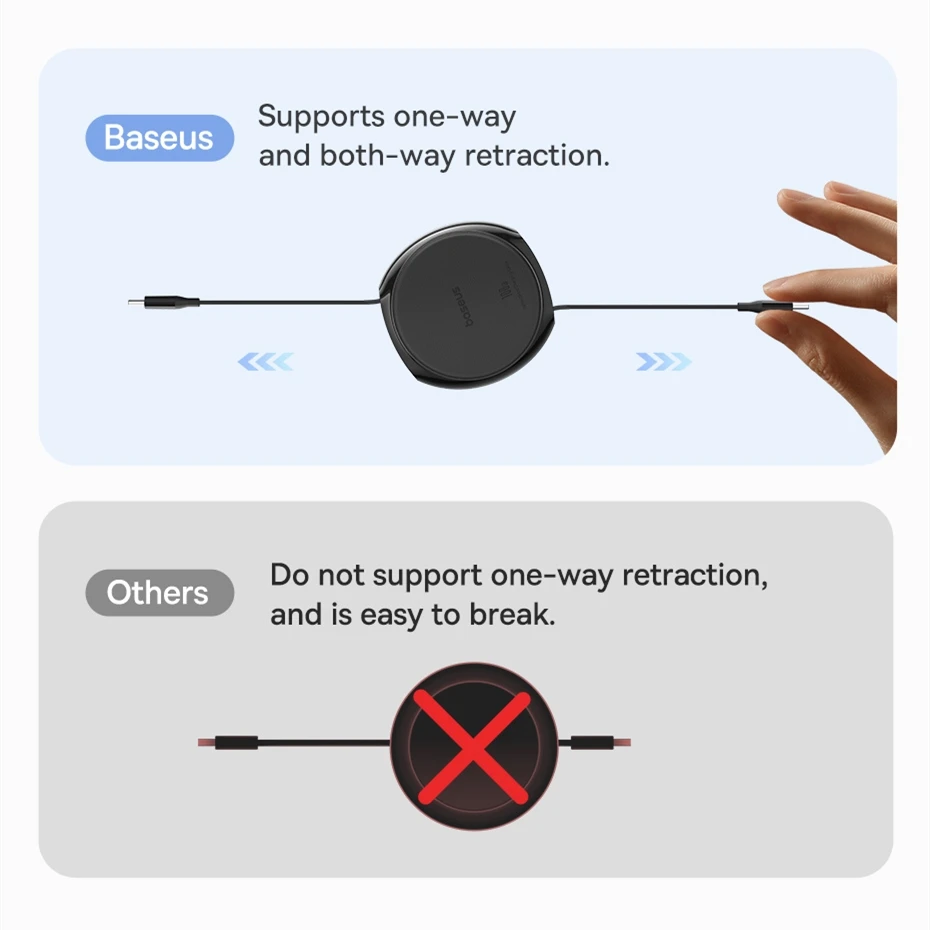 Comprar Cable USB C retráctil Baseus, Cable de 100W para MacBook, iPad, Cable de cargador rápido para iPhone 16 15 Plus Pro Max, Cable de datos